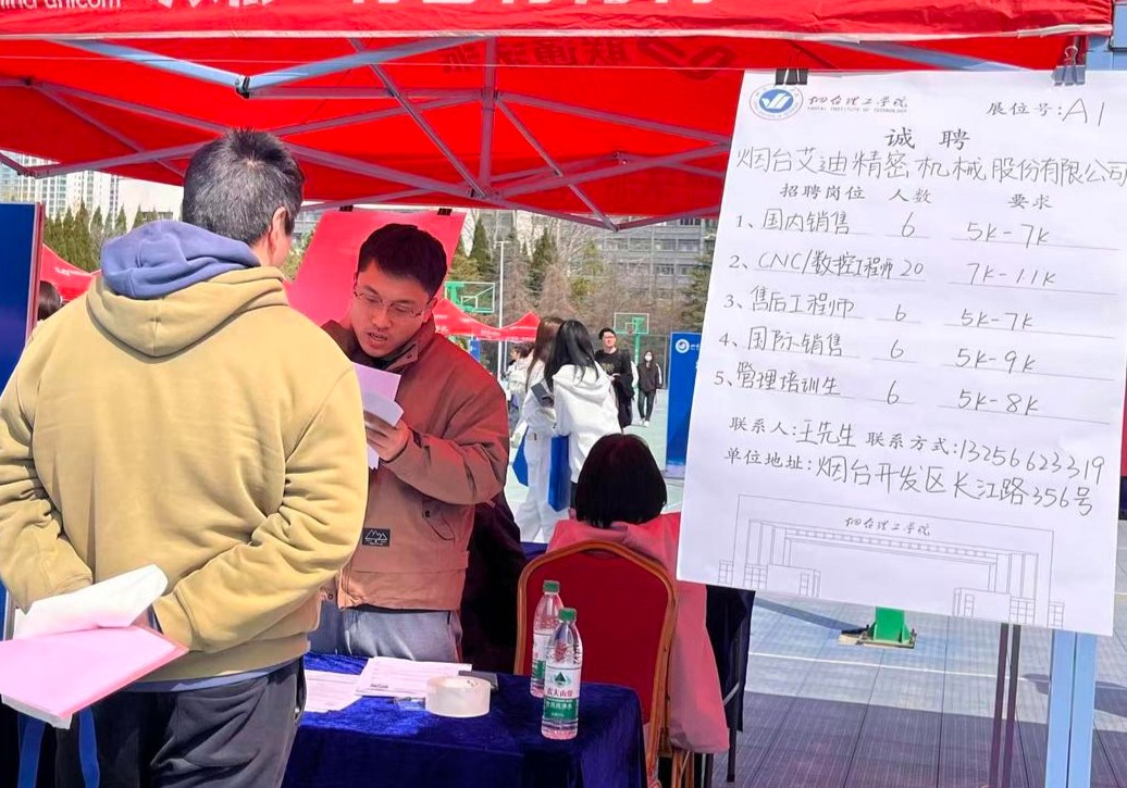 为精准对接地方产业人才需求,现场特别设立了特色招聘专区。其中,烟台市重点企业专区汇聚了艾迪精密、杰瑞石油装备、中集来福士等行业龙头企业,聚焦高端制造、新能源、生物医药等核心领域,着力强化区域重点产业的人才供给;访企拓岗专区则邀请了青岛三利集团、蓬莱大金海洋重工等优质合作企业进校招聘,持续深化校地企合作成效。