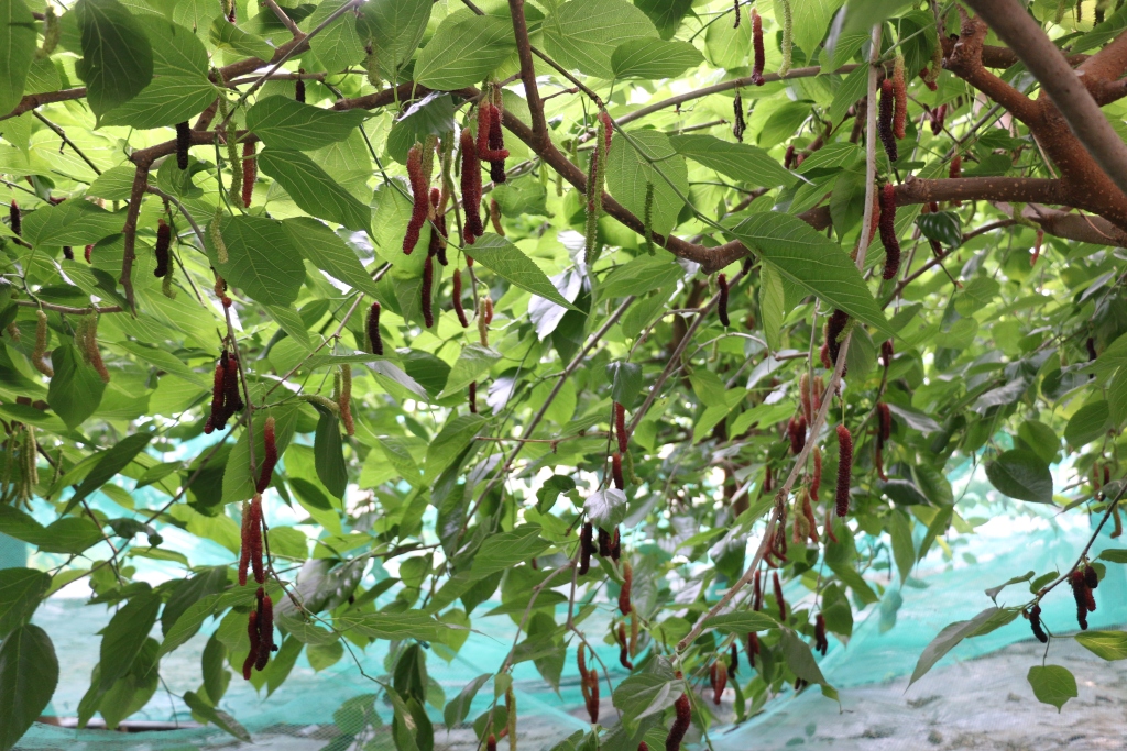 长果桑的口感,是它最硬的招牌。张居克曾经用测糖仪测过,成熟的长果桑糖度最高能达到25度左右,这个甜度已经超过了大部分常见水果。“普通的桑葚是酸甜口的,有的甚至不甜,但长果桑就是纯粹的甜,没有一点儿酸味。”