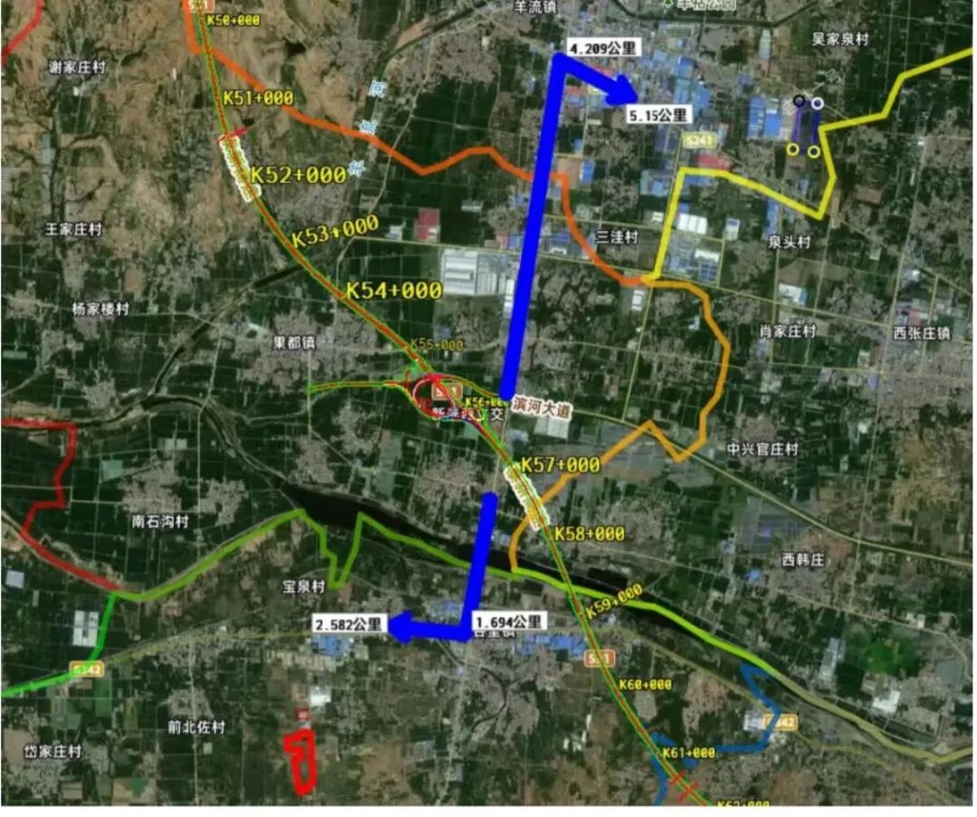 小型机动车可通过红霞路、杨家庄村道、滨河大道绕行