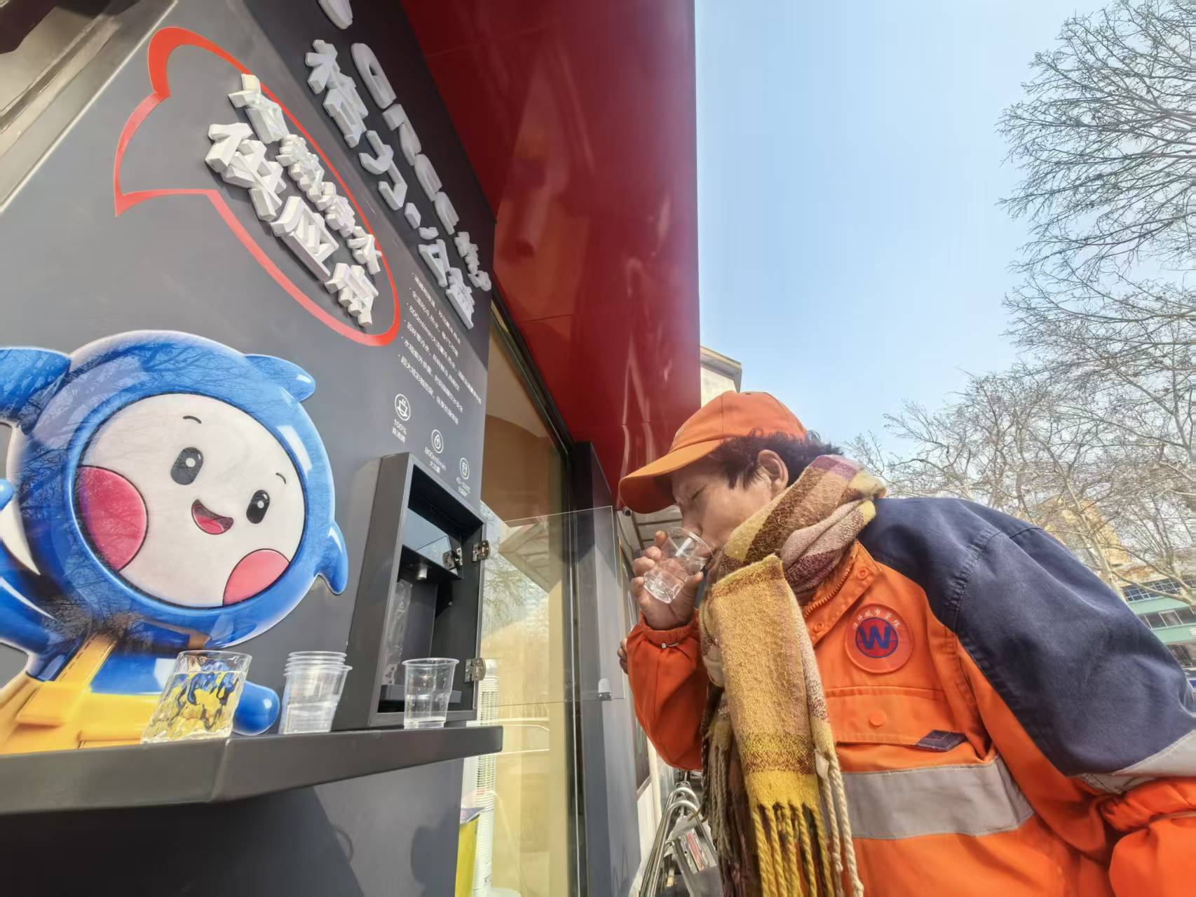 在共青团西路52号的水站旁,总能看到这样的画面:顶着日头送外卖的小哥,把电动车往路边一停,快步走过来拧开水杯,接上一杯不冷不热的水,仰头灌下几口,脸上的疲惫瞬间消散了大半;带着孩子游玩的年轻妈妈,给女儿接一杯温热的水,叮嘱着“慢点喝,小心烫”;身穿橙色工作服的环卫工大妈,每天清扫完路段,都会过来喝杯热水,用袖口擦擦额头的汗,笑着和水站管理员打招呼。