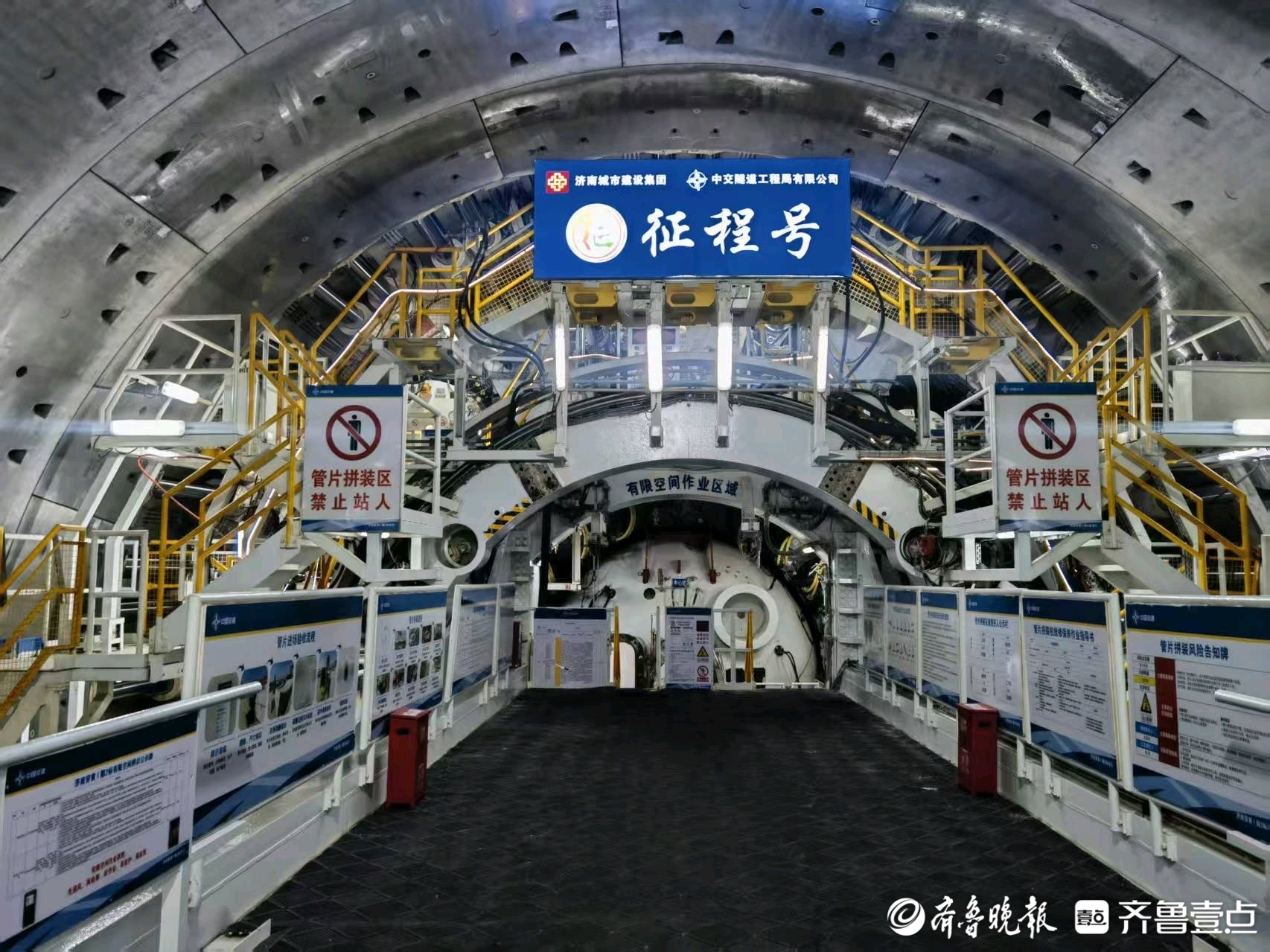 于洪彪边走边向记者介绍,这条隧道连接济南高新区与新旧动能转换起步区,中交隧道局承建的北线工程全长3245米,采用双向6车道城市主干路标准,设计时速60公里。承担掘进任务的“征程号”泥水平衡盾构机,最大开挖直径15.07米,相当于5层楼的高度,是名副其实的“地下钢铁巨兽”。“隧道最深处位于黄河水面之下40米,头顶是奔涌的河水与两岸大堤,每一步推进都事关安全。”