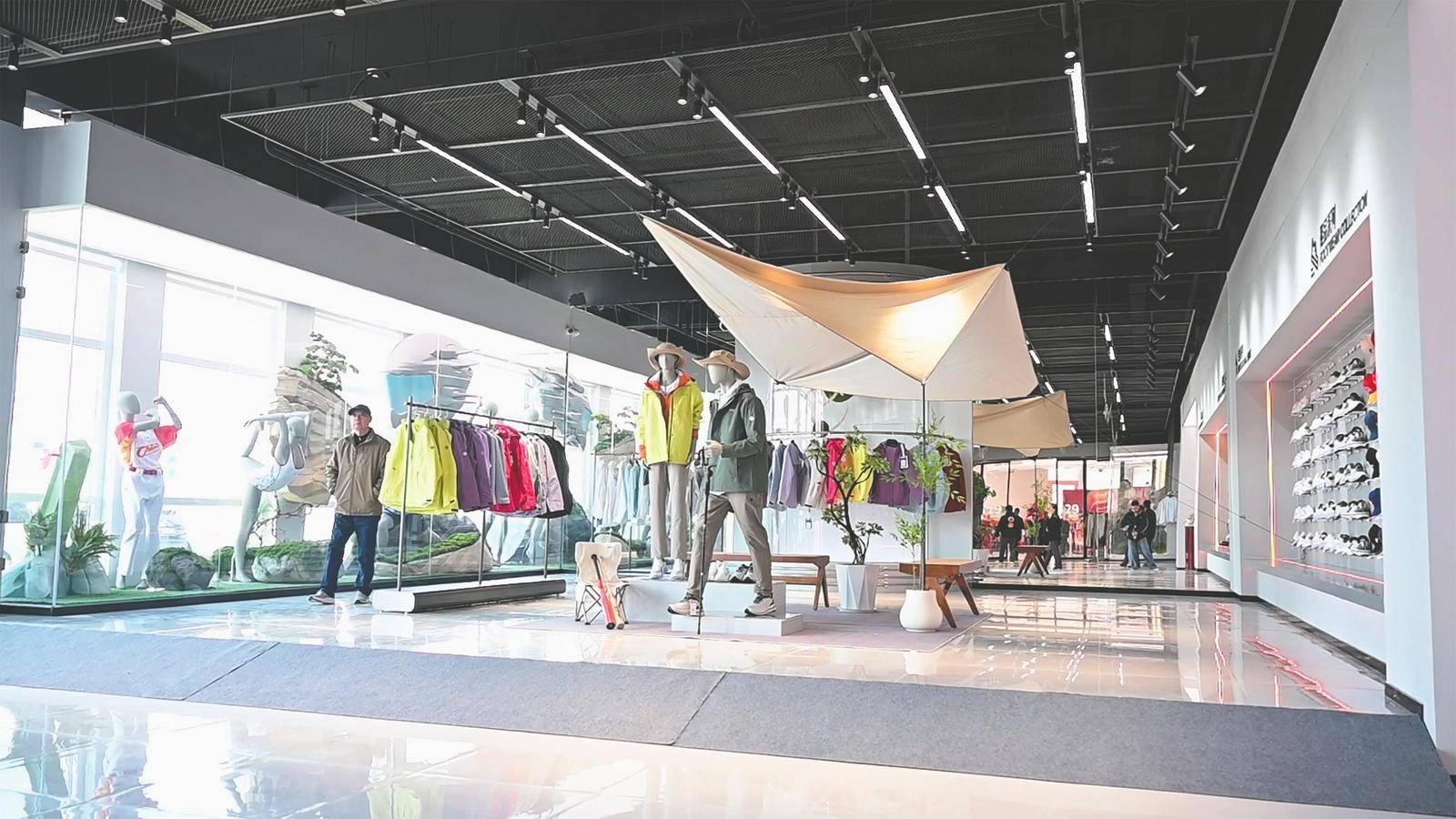 走进新落成的鹿扬大厦,从运动训练到户外探索,从商务职场到日常通勤,各式服装分类陈列,琳琅满目。