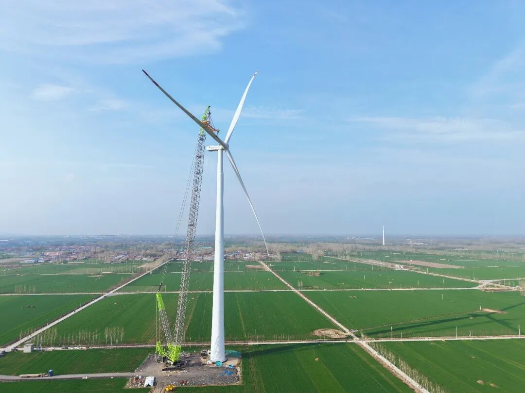 据时代绿色能源有限公司消息,3月29日,由时代绿能投资建设的梁山140MW风电项目首台风力发电机组完成吊装,标志着项目建设迈入新阶段。