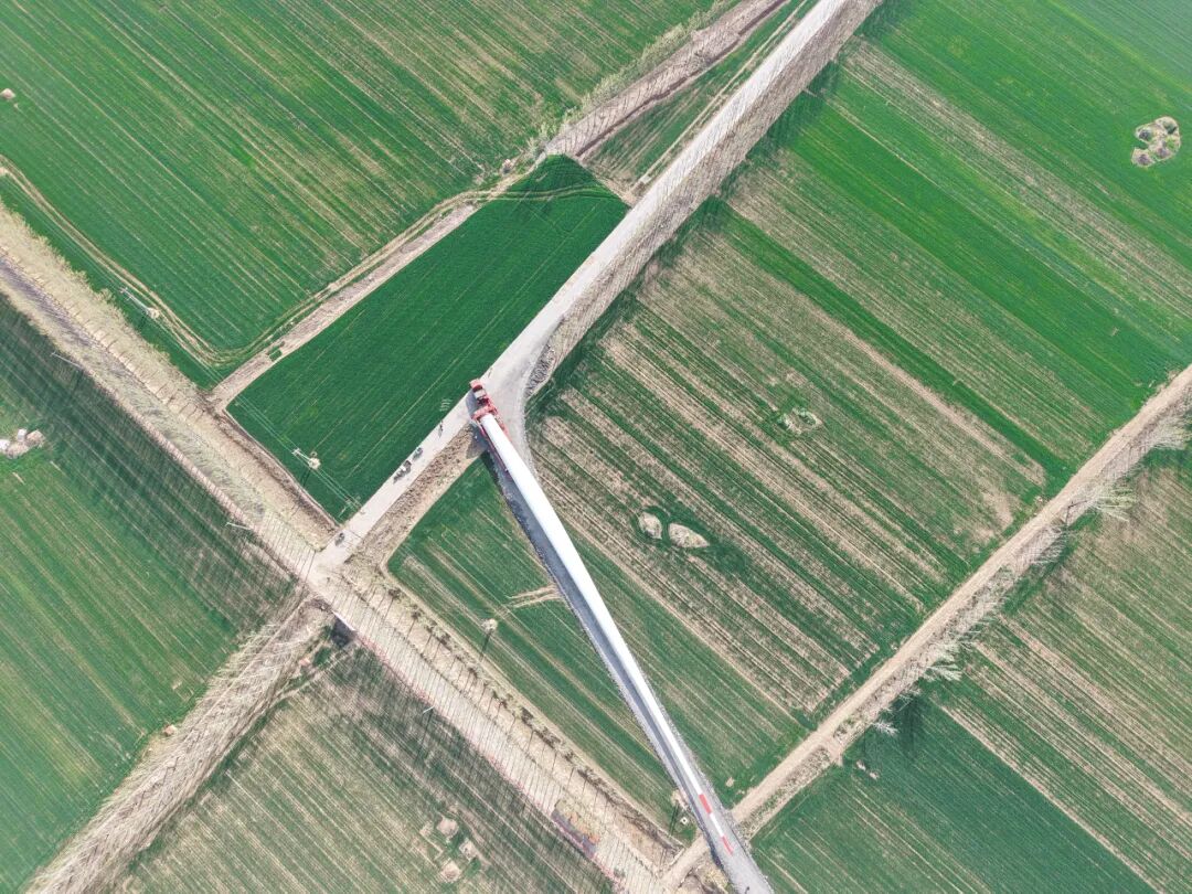 该项目位于济宁市梁山县拳铺镇、韩垓镇境内,地处黄河冲洪积平原,总装机容量140MW,共安装18台风电机组。风机轮毂中心高度达160米,叶轮直径最大达233米,叶片扫风面积超过4万平方米,相当于6个标准足球场大小。项目采用单机容量7.5MW和8.5MW的大功率风电机组,有效提升了土地利用效率和发电效能。