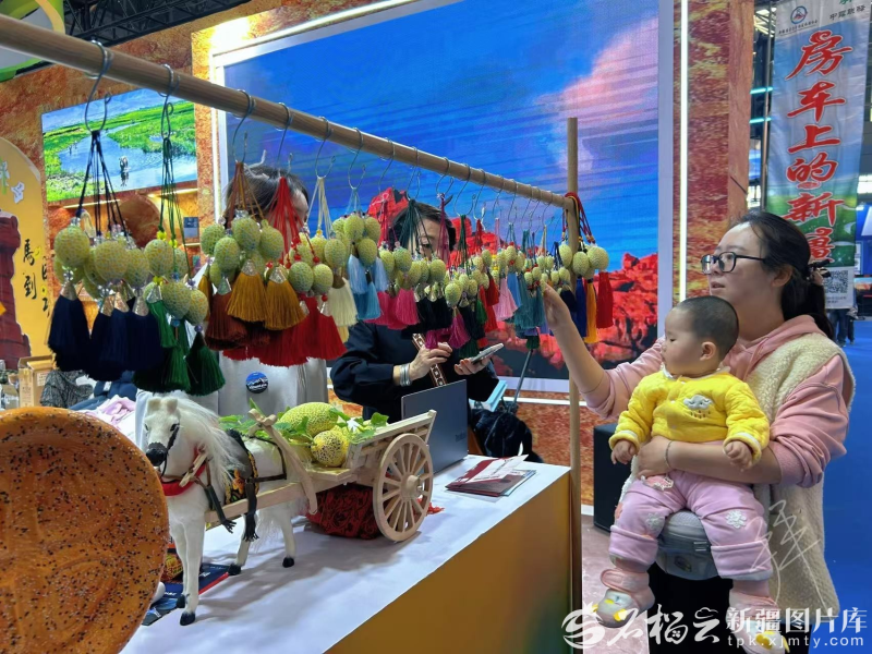 3月28日,第七届新疆春季旅游博览会现场,游客王春华手里攥着一串迷你哈密瓜挂件,翻来覆去地仔细端详。“这纹路、这颜色,简直就是哈密瓜本瓜。”她越看越喜欢,一口气买下十几串,打算送给身边亲友。
