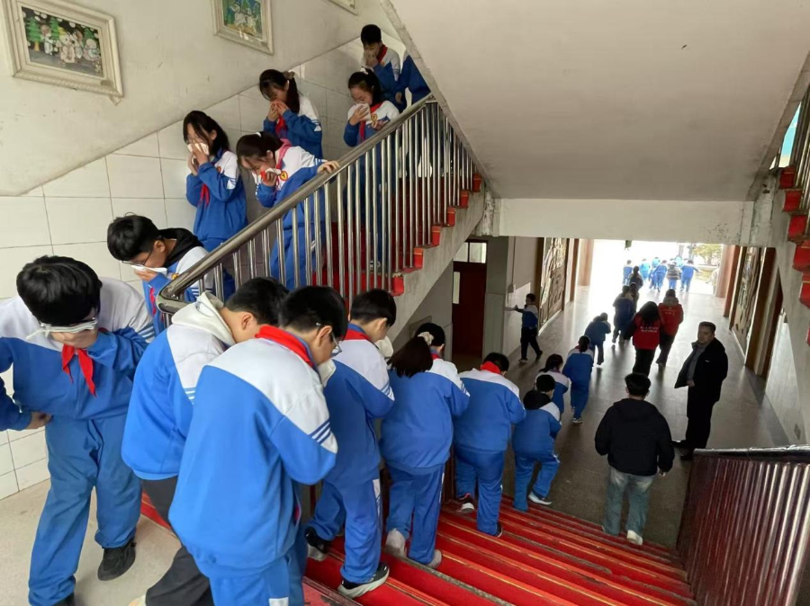 在济宁市梁山县第二实验小学,一场疏散逃生演练正在紧张进行。随着一阵急促的警报声响起,全校师生迅速进入“火场逃生”状态。孩子们用湿毛巾捂住口鼻,在梁山县消防救援大队消防员的引导下,沿着预定路线快速有序地撤离至操场安全区域。整个过程紧张而不慌乱,孩子们在亲身体验中记住了疏散逃生要领。疏散结束后,消防员还现场展示了灭火防护服、救援头盔等装备,并邀请几位“小勇士”上台试穿。“衣服好重啊,消防员叔叔太不容易了!”一名体验完的学生抹着额头的汗珠感慨道。