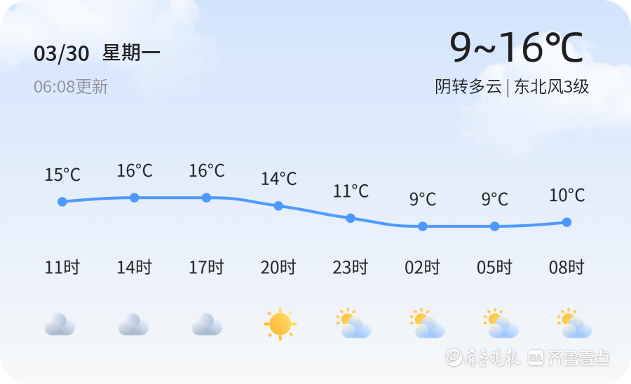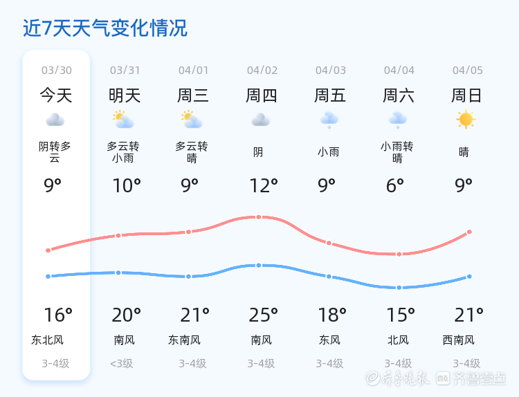 今天是3月30日,星期一,农历二月十二。临沂市天气阴转多云,气温在9到16摄氏度之间,东北风3级,空气湿度为63%,PM2.5指数为128。各区天气总体平稳,以阴转多云为主,部分地区可能有轻微降雨,市民出行请注意携带雨具。 明天,3月31日,临沂市天气将由多云转小雨,气温有所上升,预计最高气温20摄氏度,最低气温10摄氏度。相比今天,明天的降雨天气可能会对市民的出行造成一定影响,建议提前做好防雨准备。 未来三天,临沂市天气将呈现多云转晴的趋势,气温逐渐升高,最高气温将达到25摄氏度。周三和周四的天气以多云和阴为主,周五可能出现小雨。市民需根据天气变化合理安排衣物,避免感冒。 市民在本周需特别关注天气变化,及时增减衣物。降雨天气时,建议减少外出,如需出行请注意交通安全。气温回升时,可适当进行户外活动,享受春日阳光。