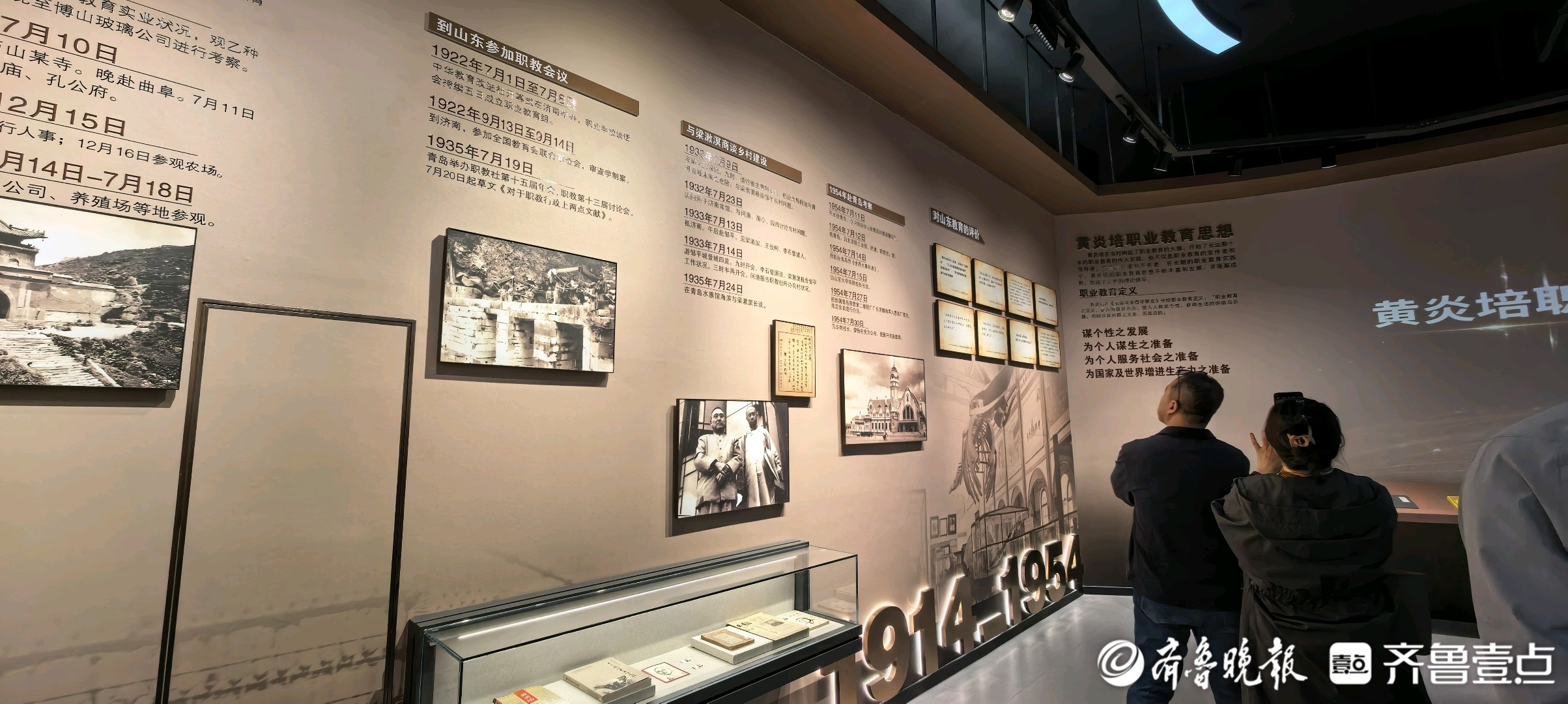 布展上,展馆打破传统模式,将珍贵史料、实物展品与“职教树”、互动大屏等现代科技相结合,既还原黄炎培投身职教事业的历程,又直观展现山东职业院校办学风采、技能人才培养成果,沉浸式诠释“手脑并用”的职教精髓,互动体验感十足。