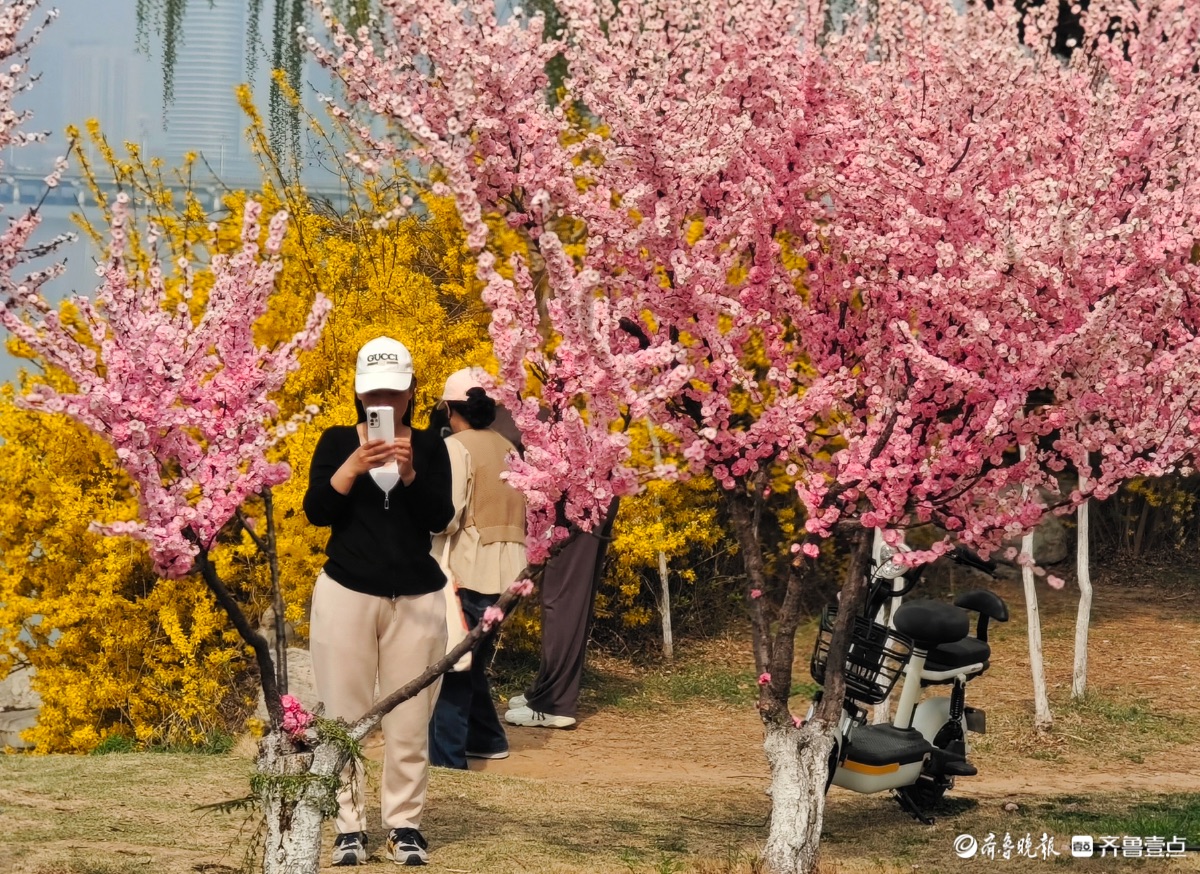 3月28日,恰逢周末,临沂沂河岸边的滨河公园内,众多游人被春日美景深深吸引,纷纷掏出手机拍照,定格这美丽瞬间。高军摄
