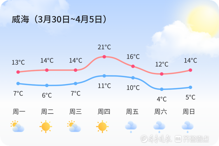 【3月30日,威海】请查收本周的天气预报