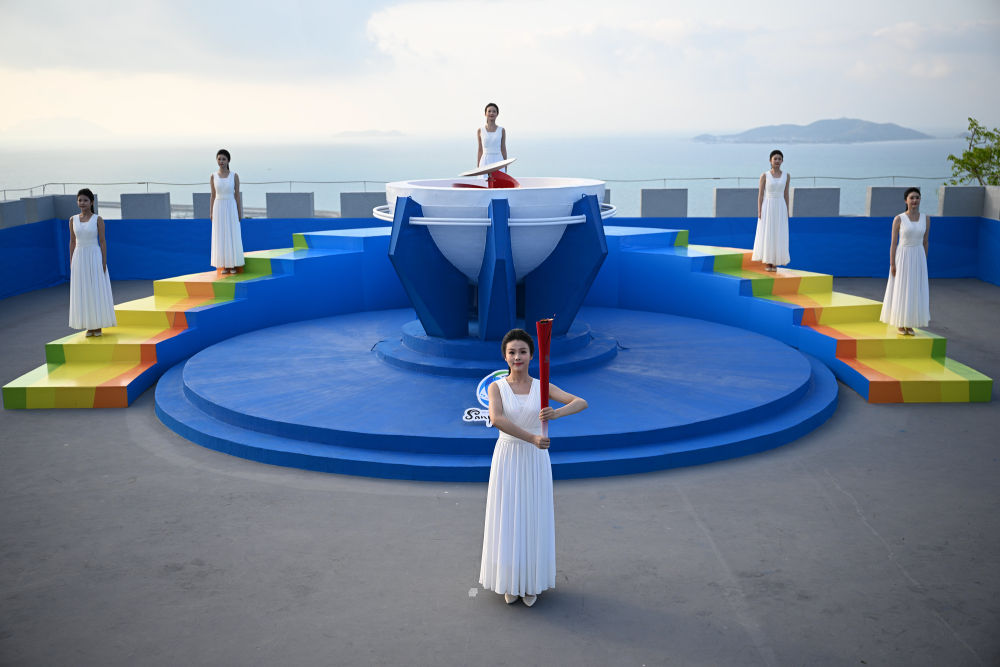 新华社快讯:第六届亚洲沙滩运动会火炬传递30日在海南三亚开始。图为3月30日举行的火种采集仪式。新华社记者蒲晓旭摄