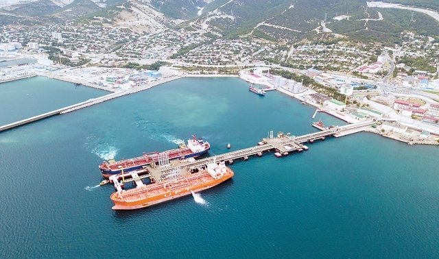 新罗西斯克市石油码头的油轮