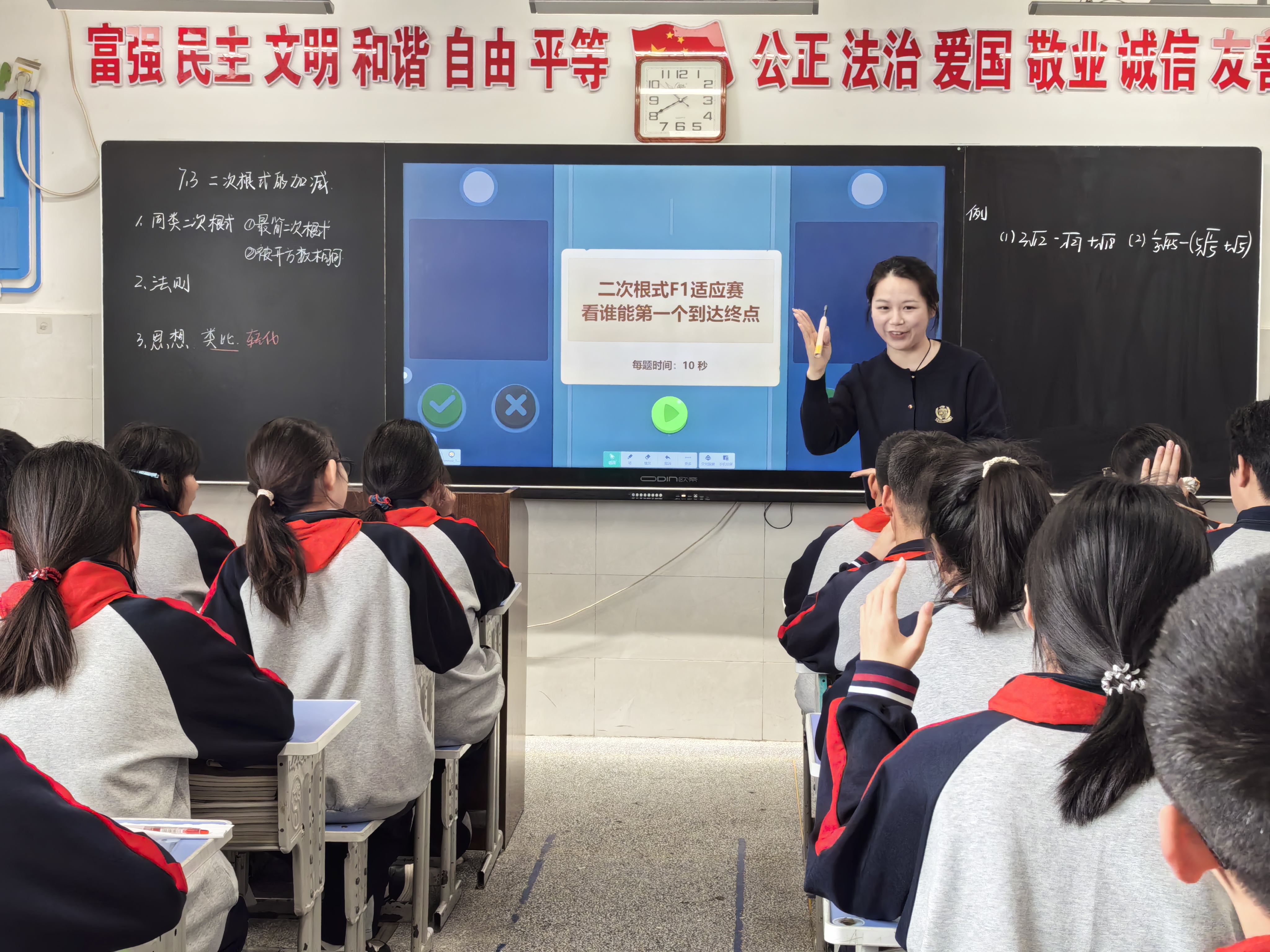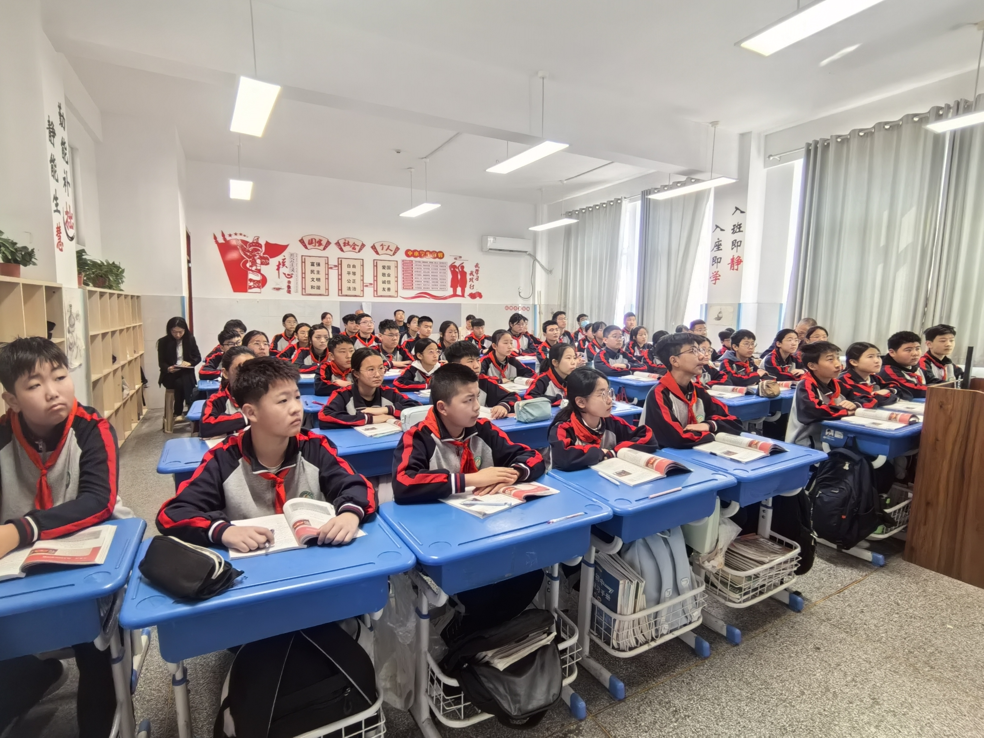 初中阶段的教学深耕教材、注重能力培养,各授课教师展现出扎实的教学功底。语文六年级品读经典散文《匆匆》,薛雅婷、马银萍两位教师深挖文本内涵,引导学生感受时光的珍贵;数学八年级讲解《二次根式的加减》,马东旭、陈慧两位教师注重逻辑梳理,帮助学生构建系统的数学知识体系;历史七年级以《伟大的历史转折》为课题,刘芯余、臧丽华两位教师以史为鉴,带领学生回顾历史、感悟初心;道德与法治六年级探讨《公民的基本权利》,柏玉梅、王雨两位教师结合生活实际,让法治知识走进学生心中。
