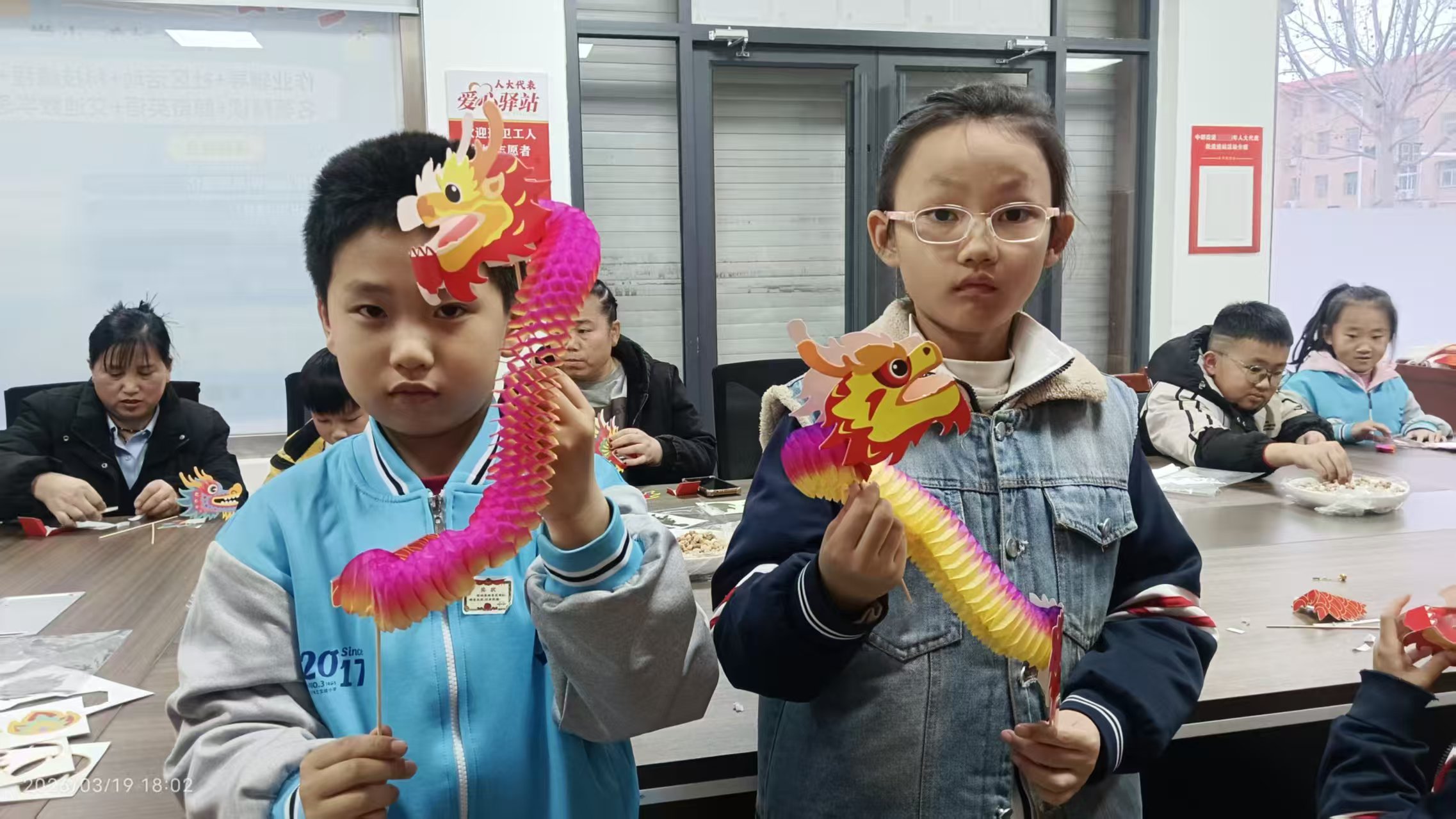 活动现场,社区工作人员提前准备了龙形手工材料,详细讲解制作步骤与技巧。孩子们在家长的陪伴下,专注地裁剪、拼接、粘贴,小心翼翼地完成龙身、龙首的组装,现场欢声笑语不断。随着一件件色彩鲜艳、造型精致的手工龙作品成型,孩子们手持成果露出灿烂笑容,不仅锻炼了动手能力,更在互动中增进了亲子感情。