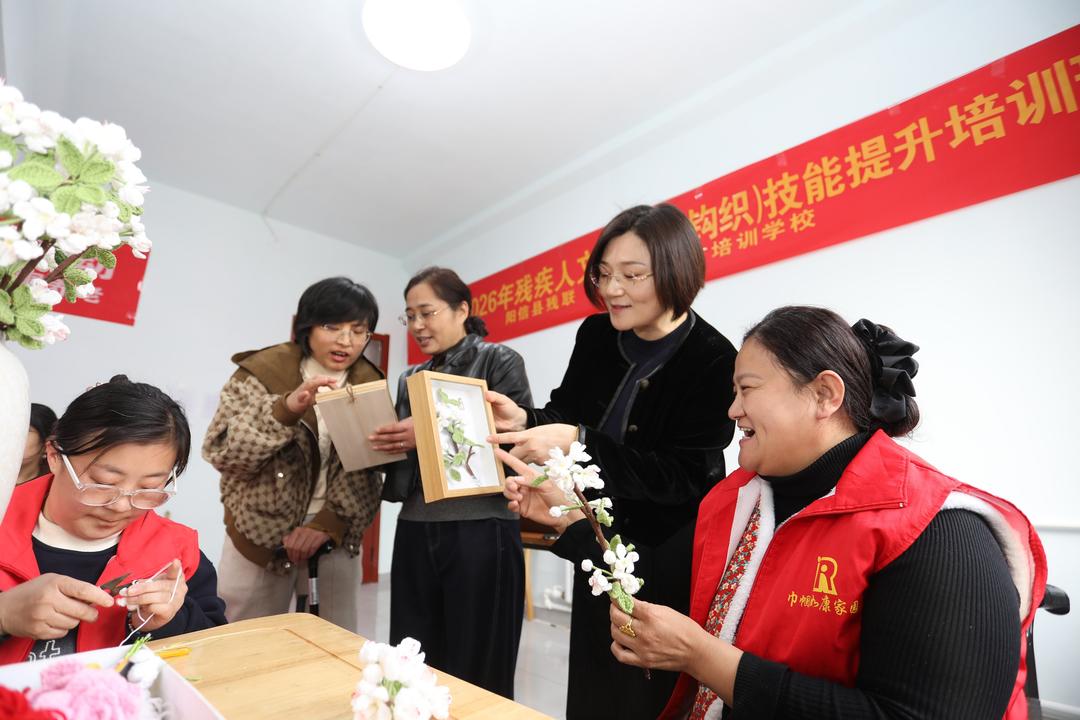 为助力第37届梨花会,促进残疾人就业增收,阳信县残联、阳信新东方职业培训学校于3月25日至3月28日,开展了2026年残疾人文创(毛线钩织)技能提升培训。培训结合梨花会文旅场景,旨在让学员掌握文创产品设计、包装及展销技巧,形成“培训—创作—变现”闭环。来自各乡镇村庄的50名学员熟练掌握阳信梨花专属钩织技法,独立完成多种形态梨花成品。据了解,这些梨花文创产品已被多家客商订购。培训班上,县科协还进行了有关科技知识讲座,受到一致好评。