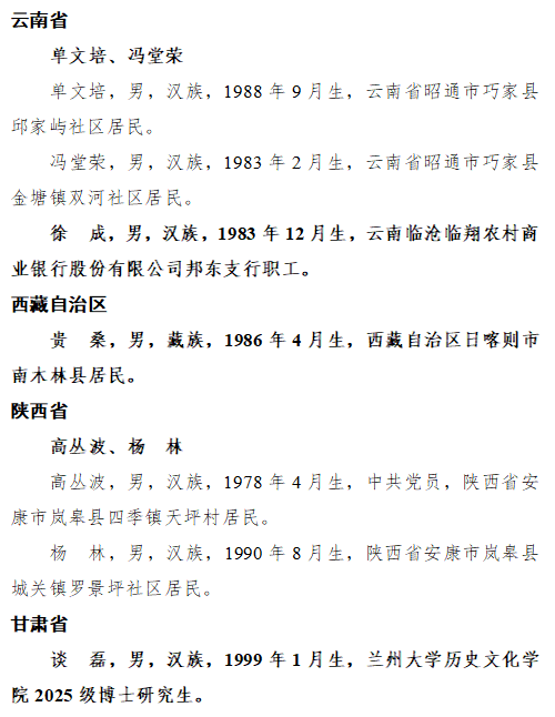 2026年第一季度见义勇为勇士榜名单