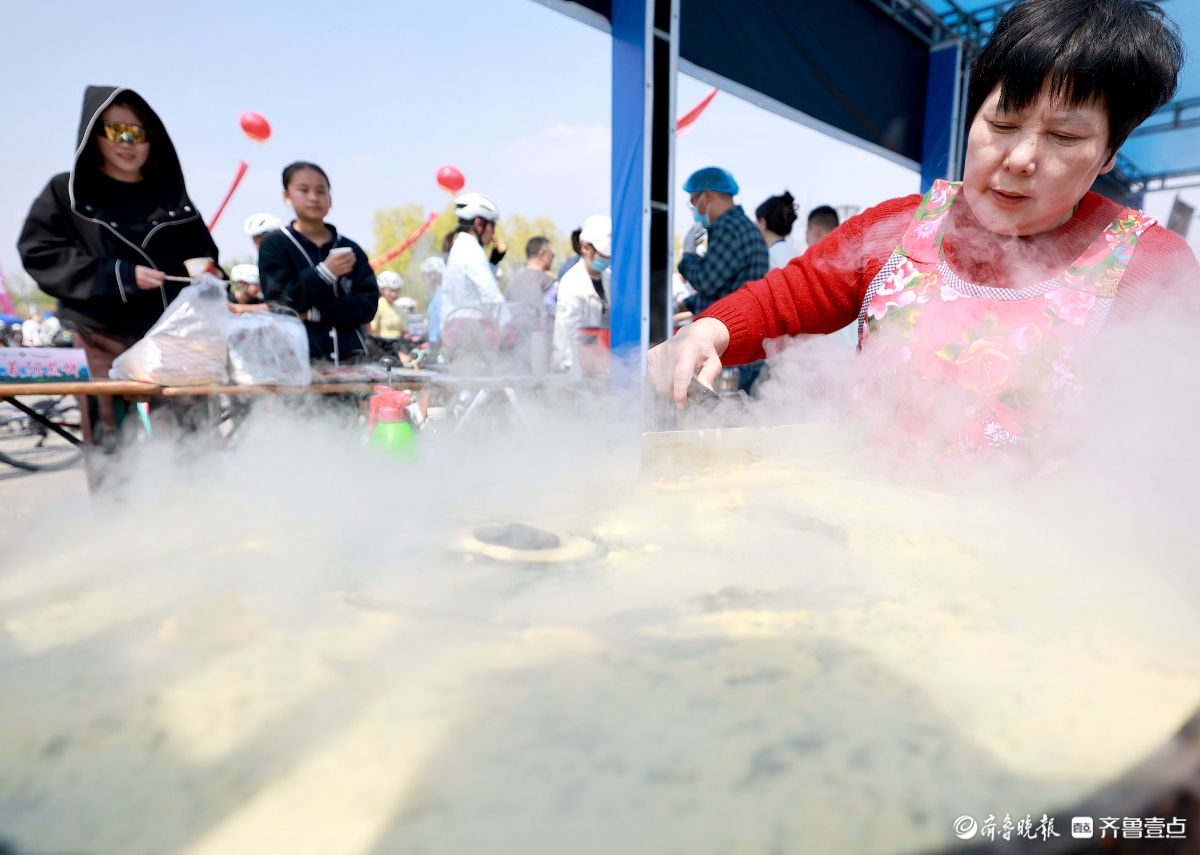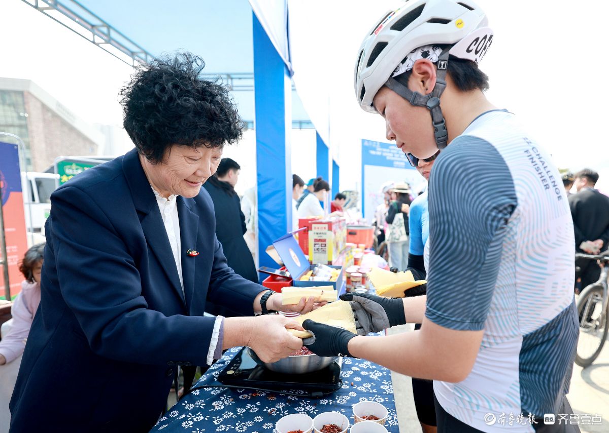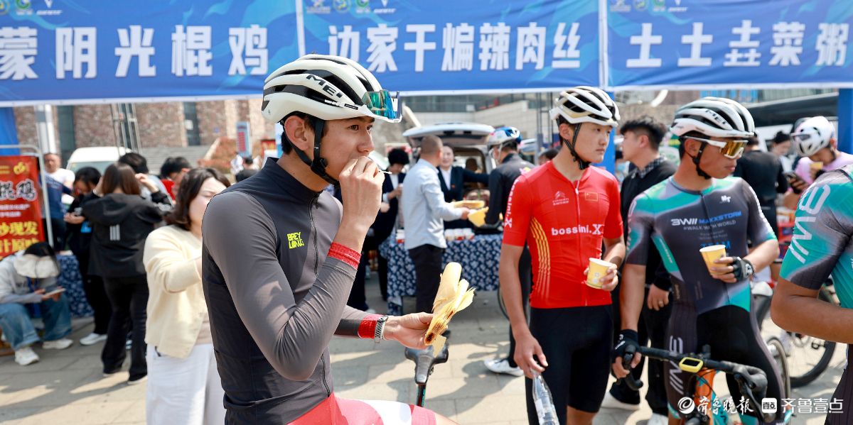 3月29日,2026“红色之旅·逐梦骑行”革命老区自行车挑战赛暨山东省首届“龍形”骑迹·环云蒙湖自行车骑游大会,蒙阴本土特色惊艳亮相。中华老字号蒙阴干煸辣肉丝、常路煎饼等地方美食为参赛骑手提供地道沂蒙风味补给;蒙阴非遗集市火笔画、虎头鞋等多项非遗技艺集中展示,让省内外骑行爱好者在感受骑行乐趣的同时,沉浸式体验蒙阴非遗文化与特色美食魅力。公茂栋摄