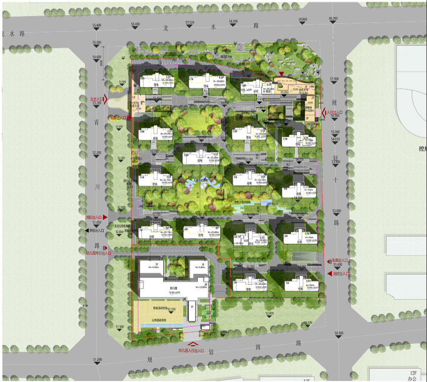项目总用地面积为32168.35㎡,总建面82148.94㎡,其中住宅建面54407.19㎡。项目拟建16栋8至17层住宅、1栋1层社区大堂、1栋2层配套用房(含邻里坊及社区大堂)以及1栋3层幼儿园。