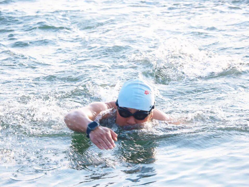 海边浅水区里,不少晨泳爱好者早已跃入海中,用独特的方式拥抱清晨的大海,尽显活力与果敢。一旁的公园健身区也挤满了锻炼的市民,大家在山海美景中舒展筋骨 ,让身体慢慢苏醒。