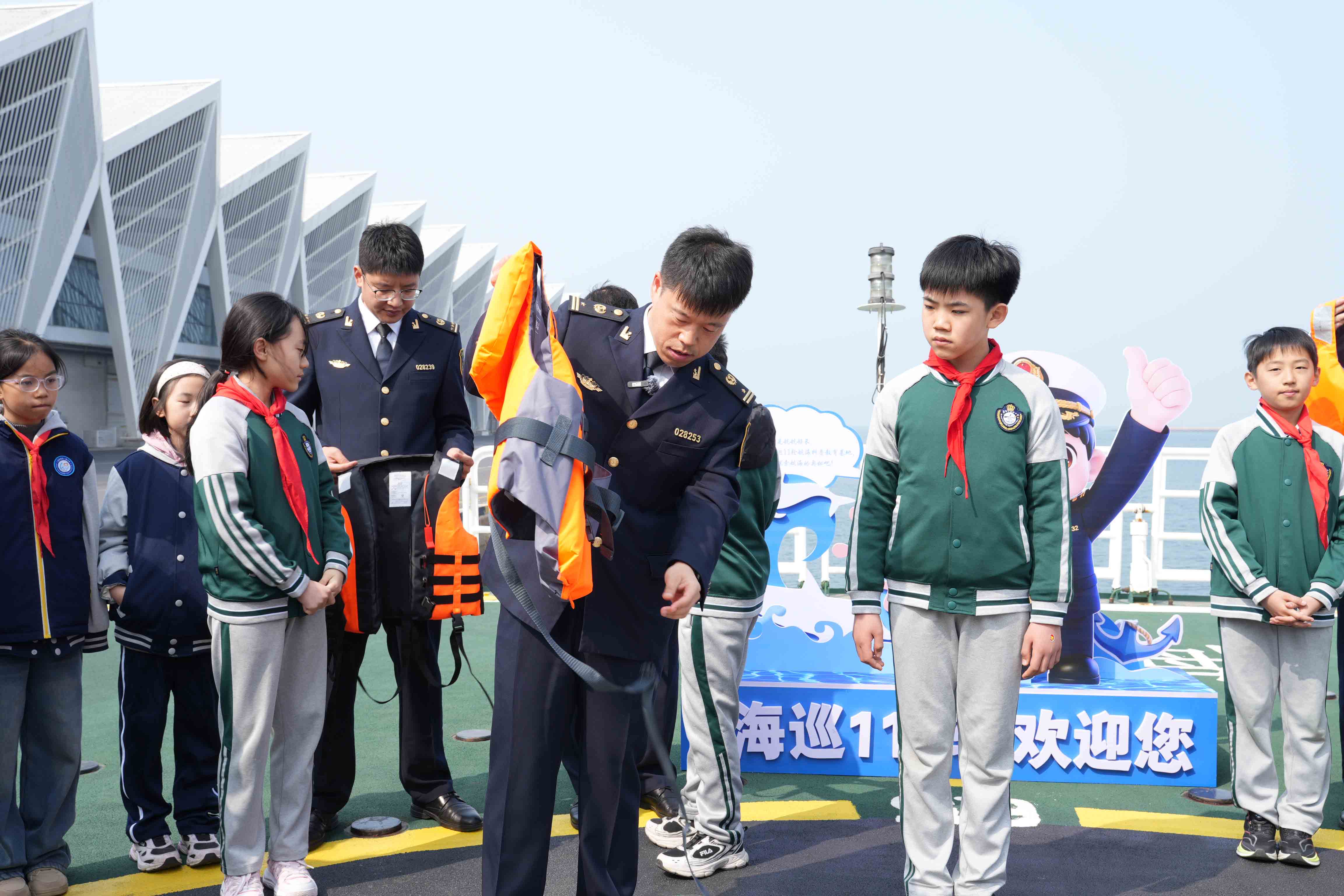 为进一步增强青少年水上安全意识,普及防溺水知识,提升海上遇险自救与逃生能力,值全国中小学生安全教育日来临之际,交通运输部北海航海保障中心青岛航标处联合青岛海事局,依托“海巡11”轮这一生动的海上移动教育基地,共同举办了“守护蔚蓝,安全‘童’行”主题实践活动。来自多所学校的40余名中小学生代表,在工作人员的陪伴下,开启了一场别开生面的水上安全探索之旅。