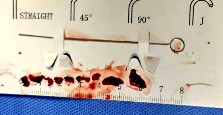 负压抽吸、回收支架——当支架取出的瞬间,一段约10mm的血栓被成功带出!