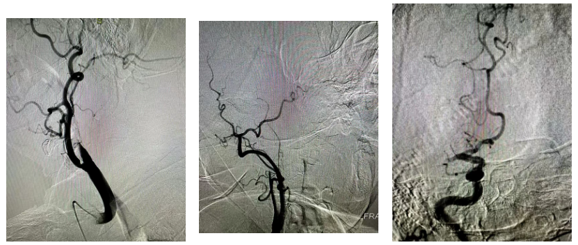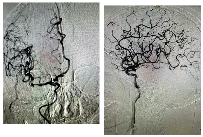 经股动脉穿刺置鞘,造影管依次行主动脉弓、双侧颈动脉、椎动脉造影——术中明确了“罪魁祸首”:右侧颈内动脉颅内段闭塞、右侧大脑中动脉闭塞。这两处关键血管的堵塞,正是导致老人意识障碍、肢体瘫痪的主要原因。