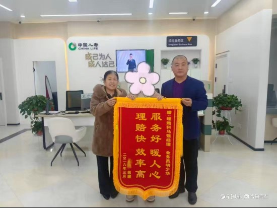 2026年3月25日,中国人寿庆云县支公司营业大厅内暖意融融。客户陈女士专程将一面印有“服务好暖人心,理赔快效率高”的锦旗送到理赔人员马强手中,对其在理赔过程中给予的专业指导和贴心服务表示诚挚感谢。