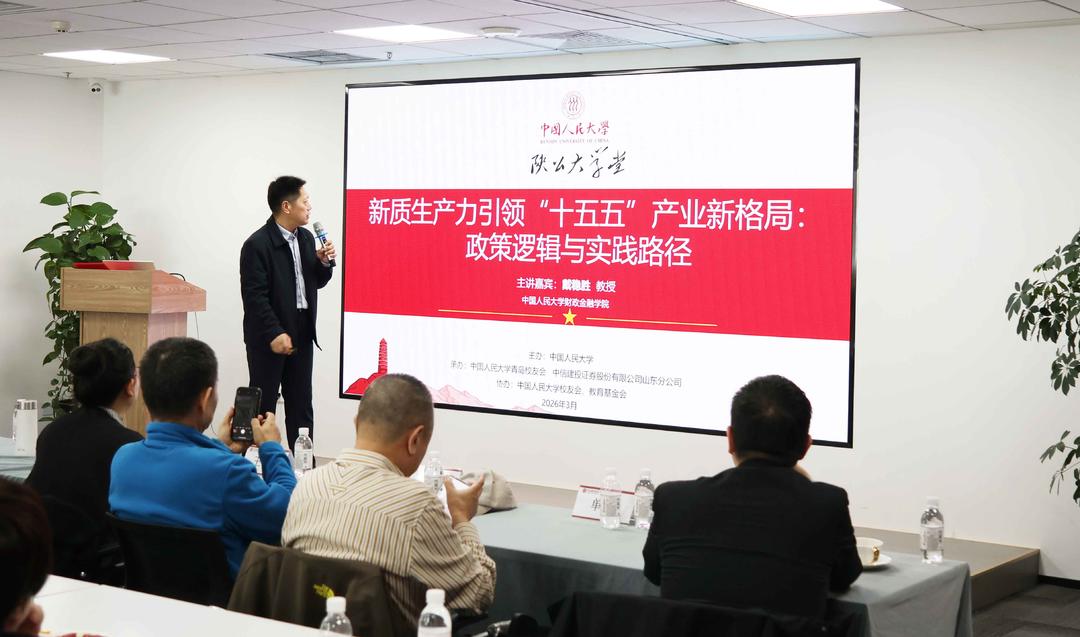 3月28日,“陕公大学堂”2026年青岛场第一期公益讲座在青岛市举办,邀请中国人民大学财政金融学院教授、博士生导师、中国保险研究所互联网保险研究中心主任戴稳胜教授,以“新质生产力引领‘十五五’产业新格局:政策逻辑与实践路径”为题作主题报告。