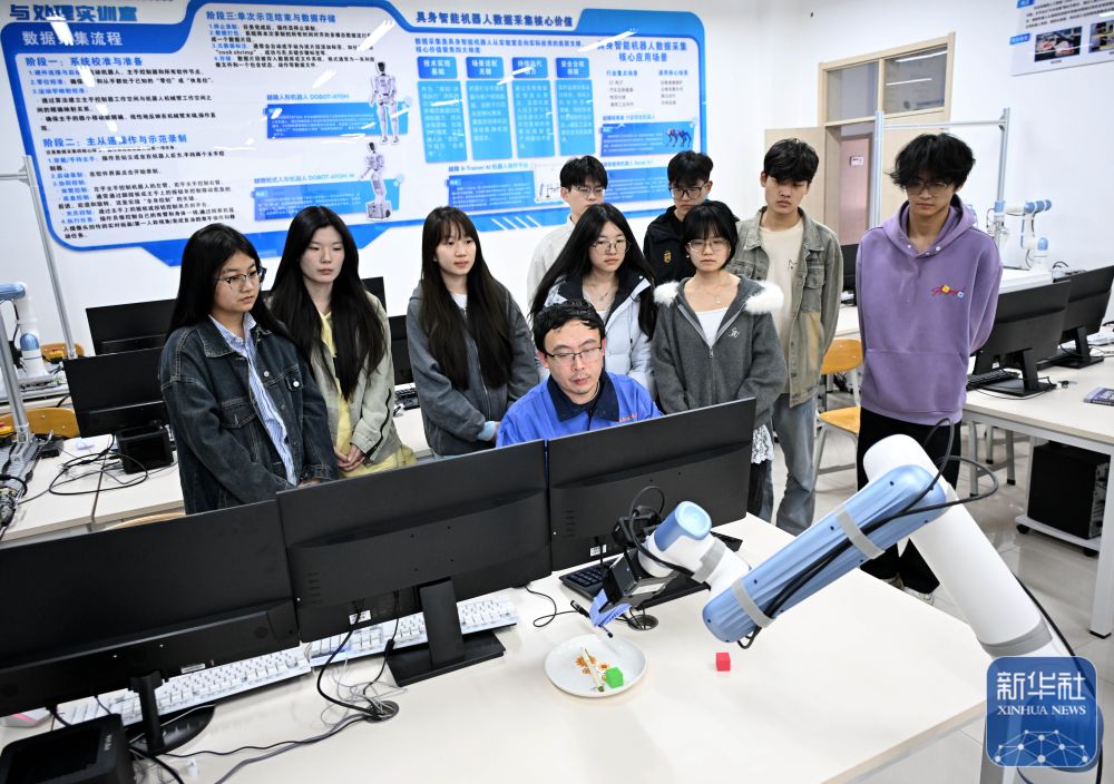 在这里,学生不仅可以进行机器人操控及训练,对机器人进行二次开发,还可以学习机器人设备运维、数据采集、售后服务等,掌握当下具身智能机器人产业所需的复合型技能。