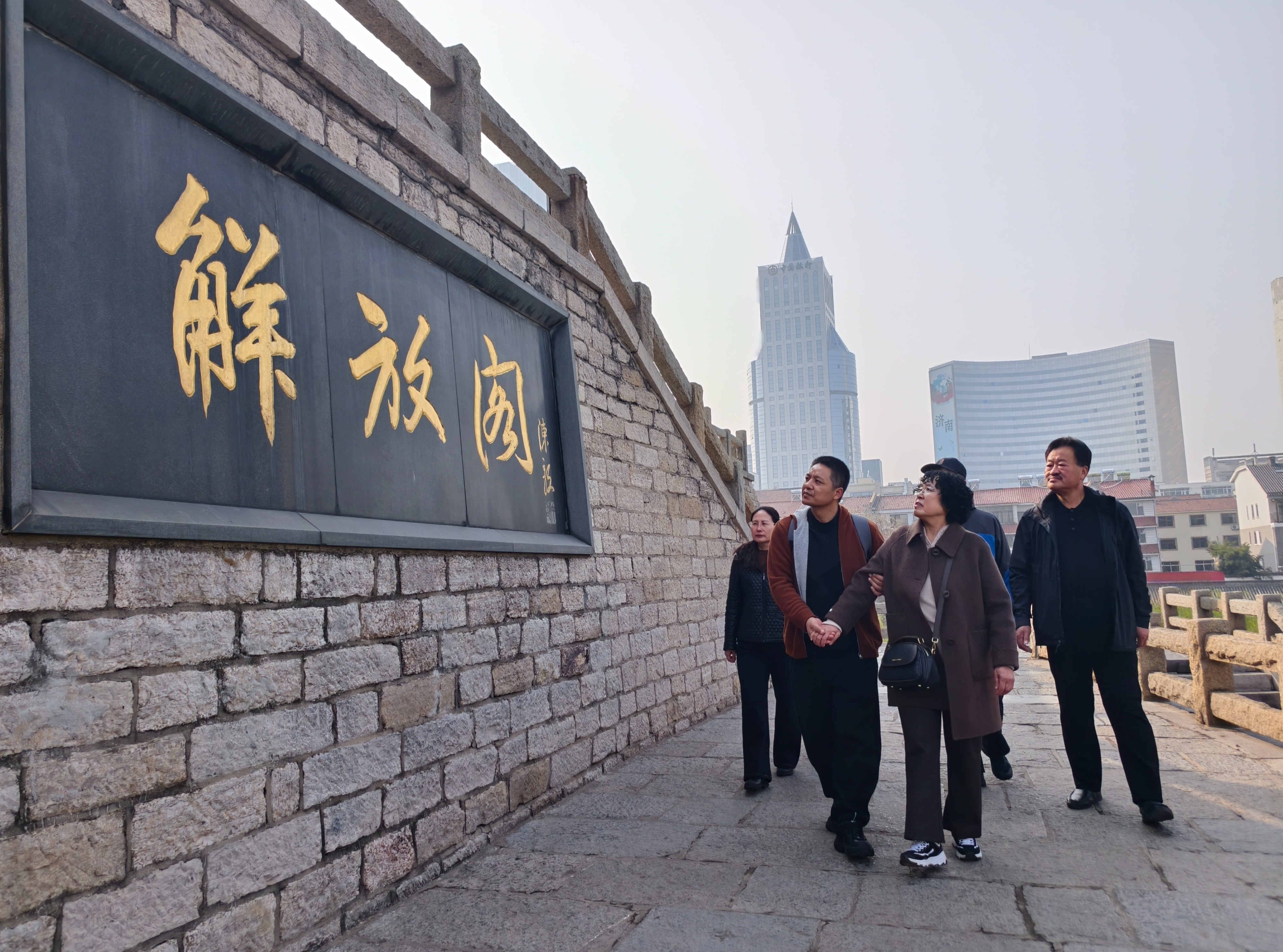 作为济南战役攻城突破口、高延修壮烈牺牲的英雄之地,济南解放阁巍然矗立、庄严肃穆。高淑敏缓步来到这片热血之地,每一步都承载着对父亲跨越半生的思念,每一眼都饱含着后人对革命先烈的无限崇敬。