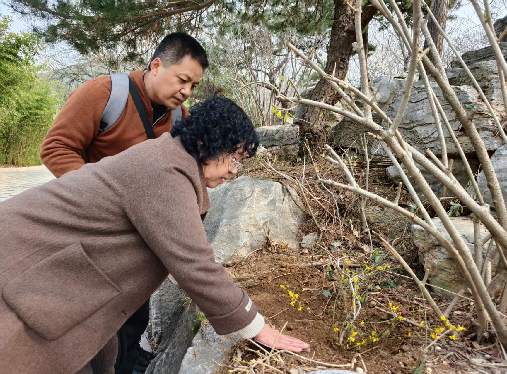 高淑敏小心翼翼地捧出那株沾着老家泥土的迎春花,认真地把它种在花坛里:“家人一直没有忘记您。就让老家的花、老家的泥土陪着您。”