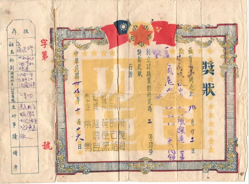 在高延修遗留下的立功奖状上明确记载:兹有高延修同志于九月二十三日于济南战役中勇敢顽强运到第一道火线,送七次弹药门板,并带领炊事员送饭。创立功绩,业经评定为二等功劳。特给此状。