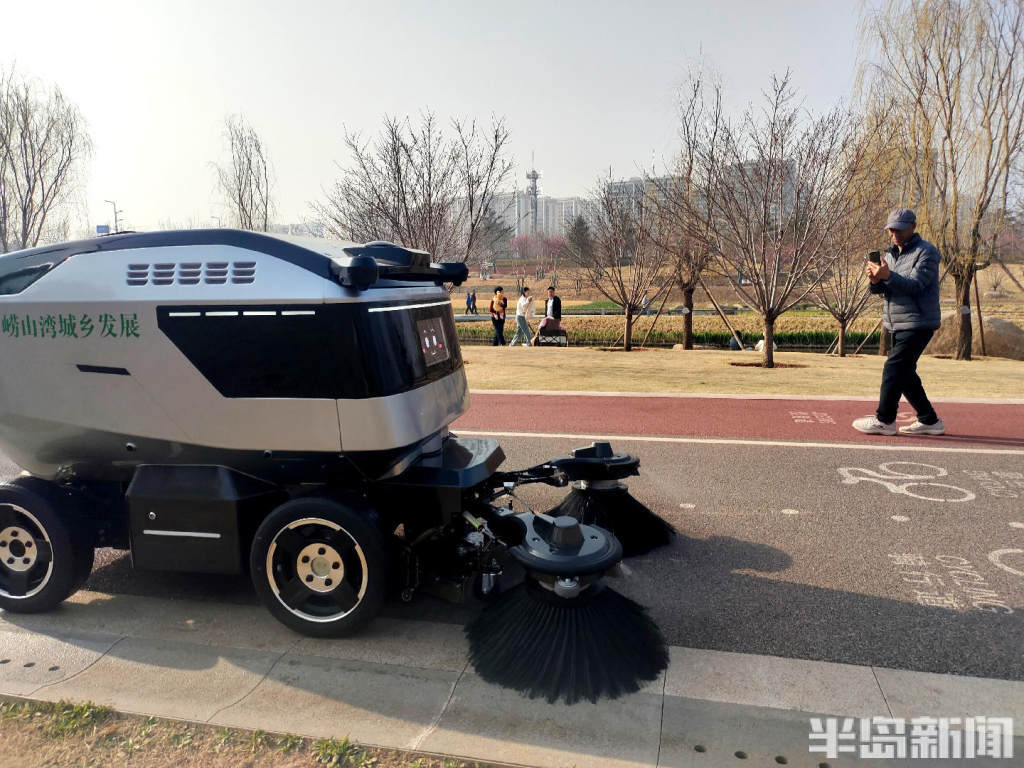 最近,不少市民游客逛张村河生态公园时,被一辆能自己打扫卫生的小车给吸引了。这是崂山区城市管理局最新引入的智能清扫机器人,单次充电可连续作业6到8小时,全流程无人操控,大幅减轻人力负担,实现主干道长效洁净。保洁人员从繁重的重复劳动中解放出来,有更多精力投入精细化维护。