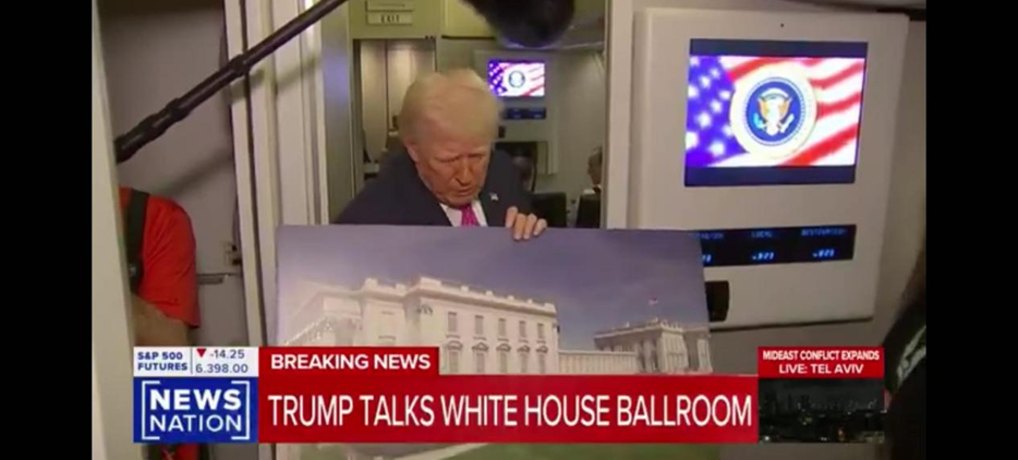 “NewsNation”新闻网称,特朗普接受记者提问时,举起一系列效果图纸谈起宴会厅改造项目,“我们有全防弹玻璃。我们有防无人机的屋顶、天花板,”特朗普说,“不幸的是,我们正活在一个这反而是件好事的时代。”