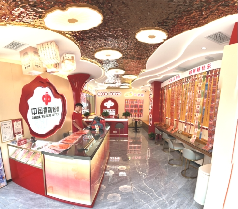 如今,走进这个福彩销售厅,映入眼帘的是一面3米宽的“刮刮乐瀑布墙”,瞬间激发购彩兴趣;销售台后的形象墙以泉水波纹为轮廓,映衬古亭剪影;天花板泛起金色水波光影,荷叶造型的灯具点缀其间。