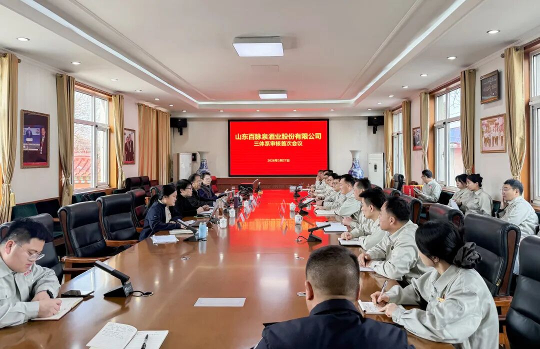 在审核首次会上,百脉泉酒业总经理马业准代表公司,向审核组四位专家的莅临指导表示热烈的欢迎。他强调,三体系建设是企业高质量发展的坚实基石,作为扎根章丘、深耕白酒行业的老牌国企,公司始终将体系管理融入生产经营全流程。马总要求,公司各部门要高度重视审核组提出的意见建议,将此次审核作为企业管理提质升级的宝贵契机,全力配合做好后续相关工作,持续将三体系要求贯穿生产经营各环节,不断夯实管理基础,推动体系管理与企业发展深度融合。