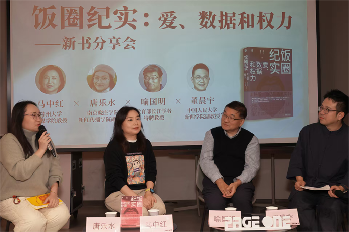 3月14日晚,在五道口PAGEONE书店,北京师范大学新闻传播学院学术委员会主任喻国明、中国人民大学副教授董晨宇,围绕苏州大学教授马中红、南京晓庄学院副教授唐乐水的新作——《饭圈纪实:爱、数据和权力》展开深度对话,四位学者为线下线上观众呈现了一次关于饭圈文化的全景式解剖。