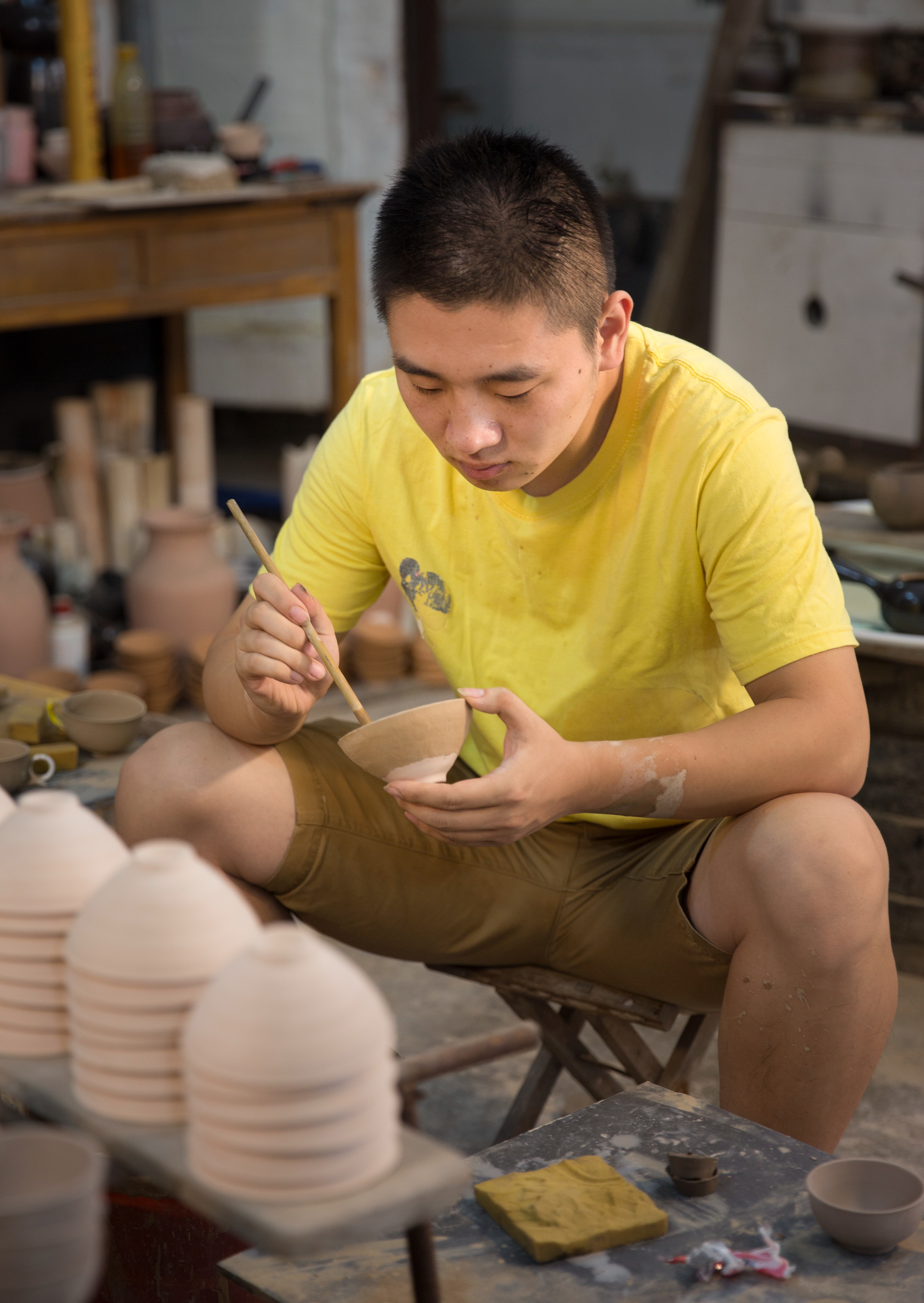灌浆、修坯、上釉、烧制……好在,父亲在周冠丞从事雨点釉的制作传承过程中一直给予鼓励和教导,周祖毅更支持周冠丞将现代设计理念融入传统工艺。