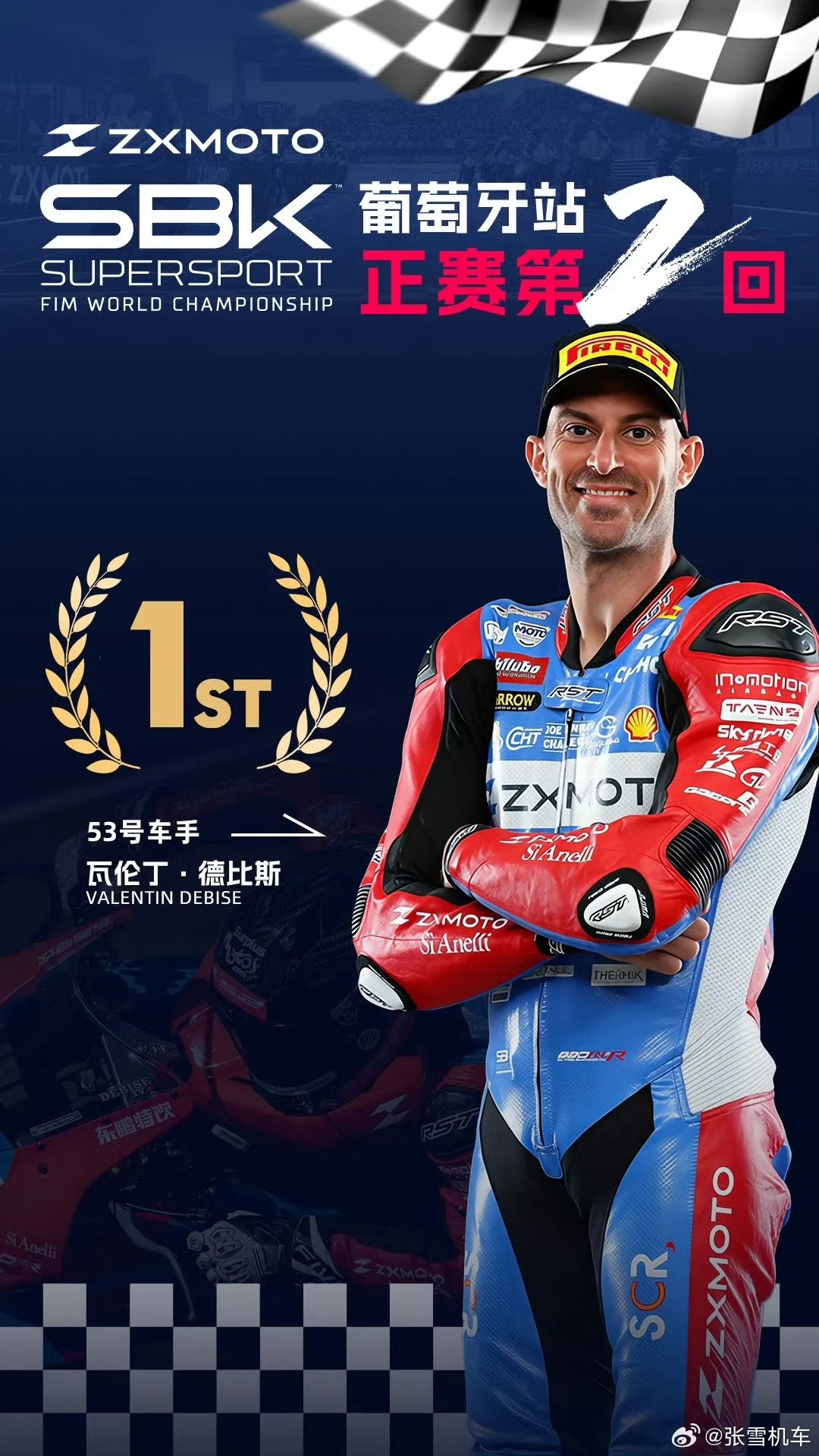 3月28日、29日,在世界超级摩托车锦标赛(WSBK)葡萄牙站中量级组别(WorldSSP)中,车手瓦伦丁·德比斯驾驶中国摩托车品牌张雪机车自主研发的820RR-RS赛车连续两回合夺冠,创造了历史。