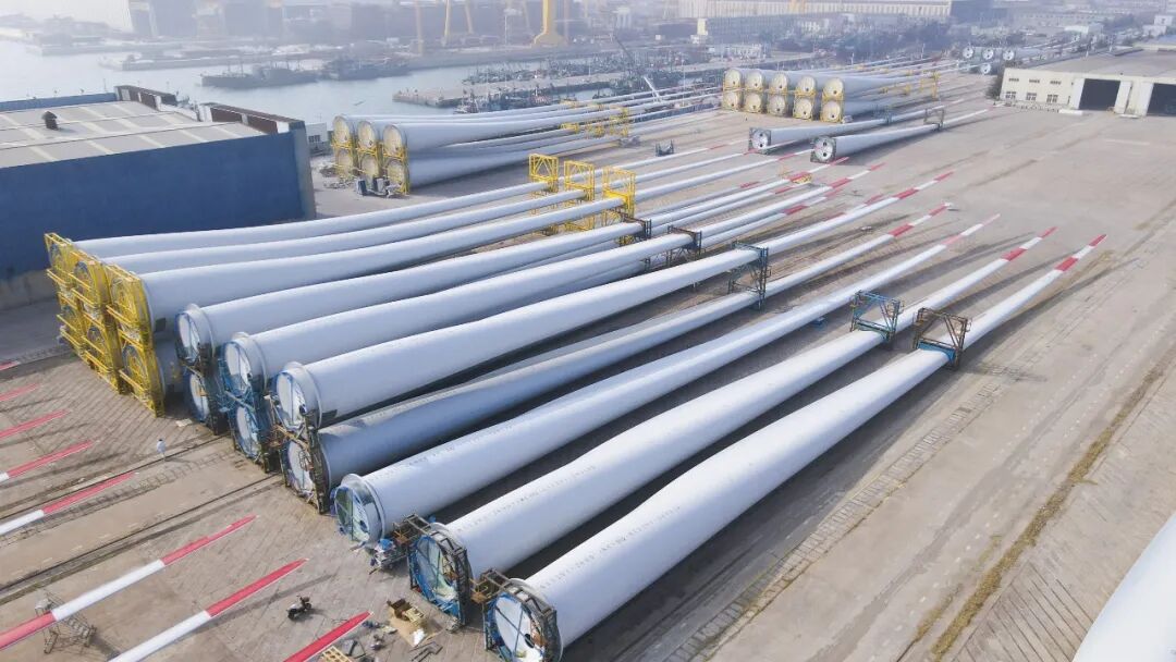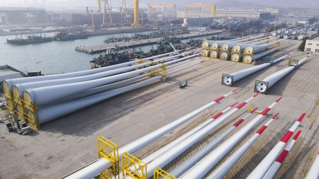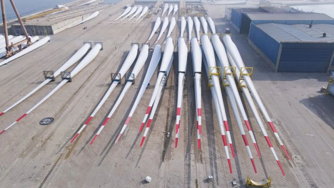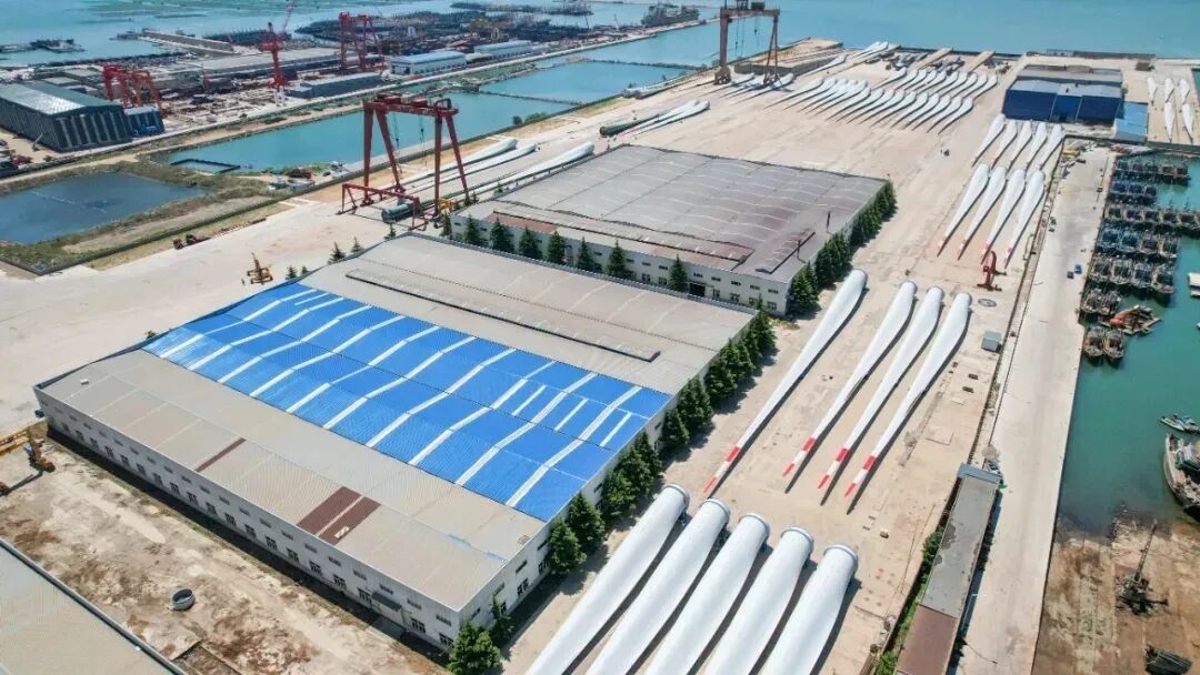 在石岛湾畔朗盛新能源偌大的生产园区内,一支支长度超百米的巨型风电叶片整齐排列,气势恢宏。现代化生产线上交织着机械的沉稳轰鸣与工人的专注身影,展现出一幅高端装备制造的生动图景。这些风电叶片即将通过厂区与港口码头的无缝衔接,实现“下线即上船”,直接装船出海,为企业抢占市场赢得了宝贵先机。