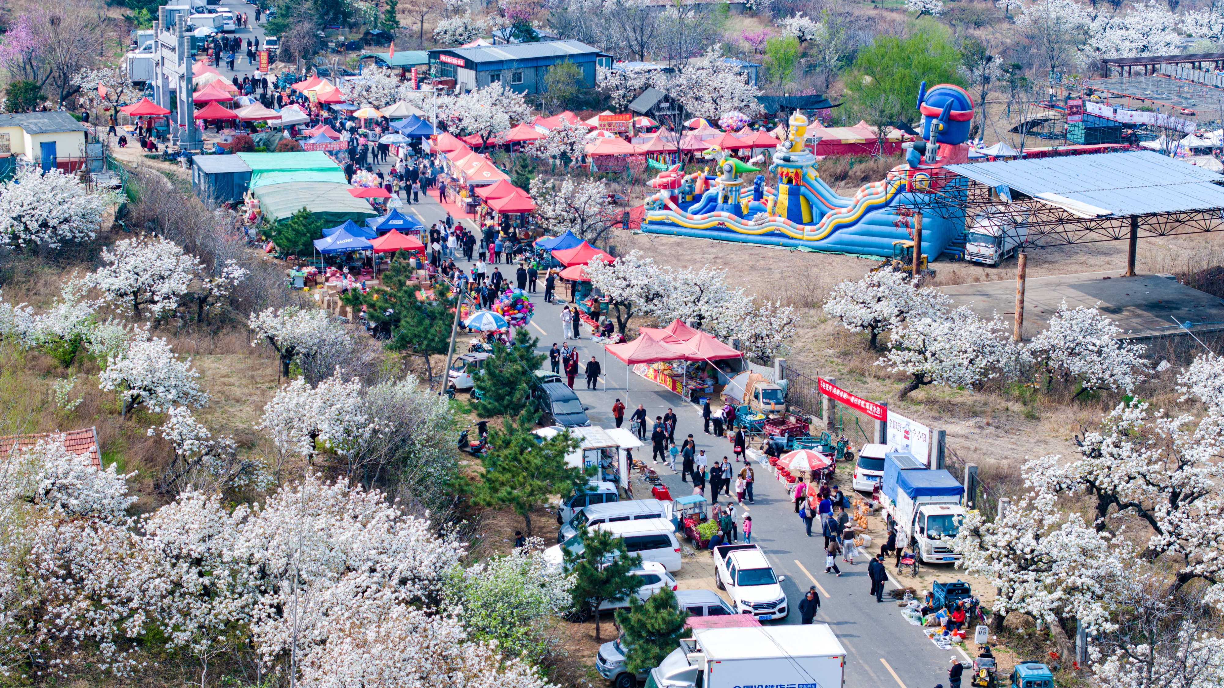 春风送暖,梨花似雪。3月30日,宁阳县葛石镇凤凰山景区,万亩梨花竞相绽放,在这片拥有2万余株百年以上古梨树的千年梨园之中,一场别开生面的“黄河大集”正在火热开市,催生“赏花经济”。