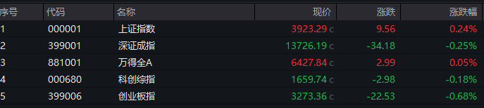 3月30日,A股三大指数集体低开,沪指盘中一度失守3900点,跌超1%,截至收盘,沪指收复3900点,上证指数收涨0.24%报3923.29点,创业板指、深成指跌幅收窄,深证成指跌0.25%,创业板指跌0.68%。沪深两市成交额1.92万亿元,较上一个交易日放量626亿元。