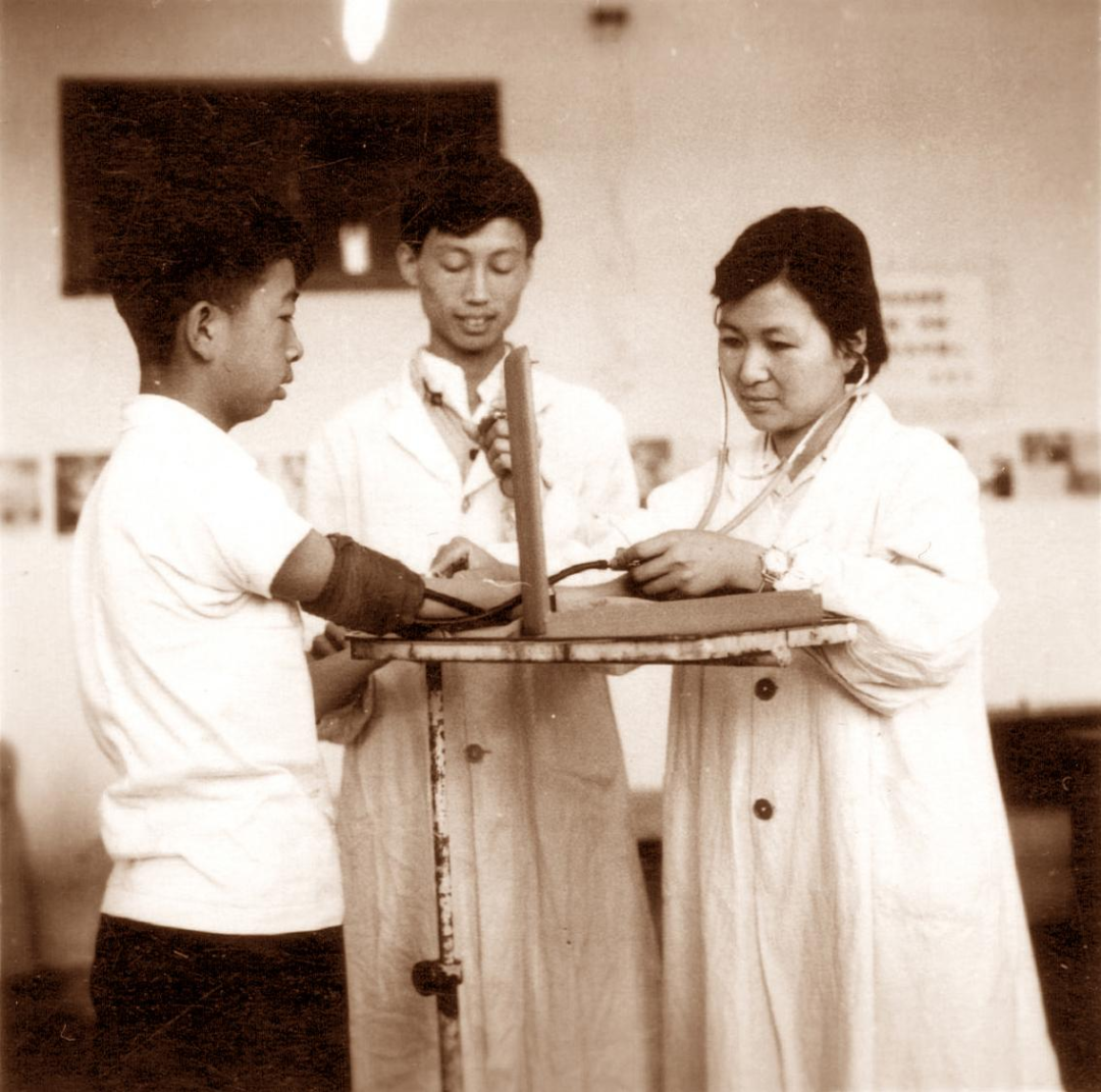 1965年选拔飞行员体检,王铭灏医生为学员做立位血压测裁剪