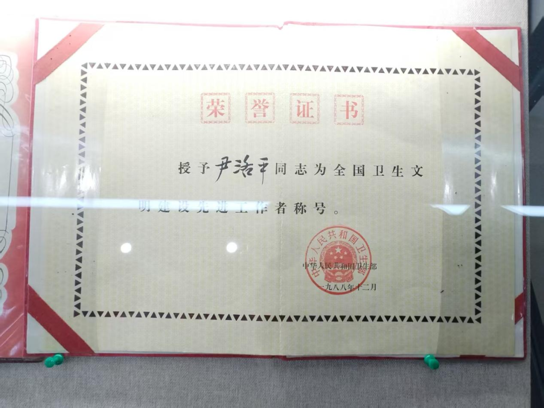 1988年尹洛平被授予全国卫生文明建设先进工作者称号证书