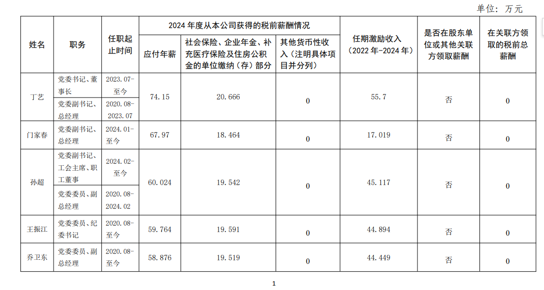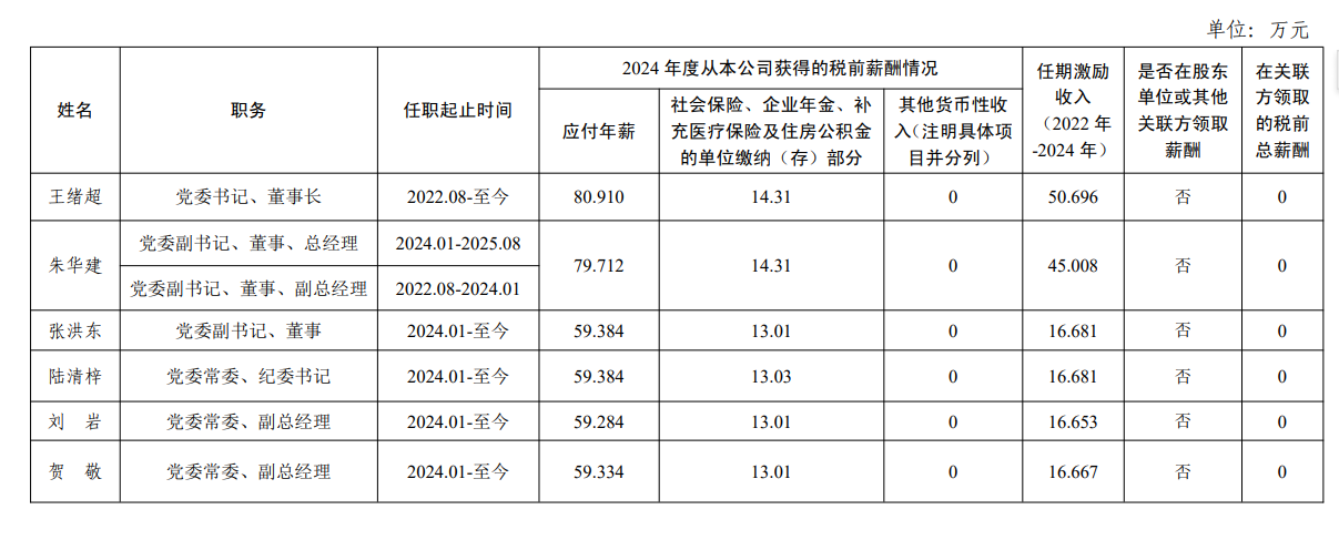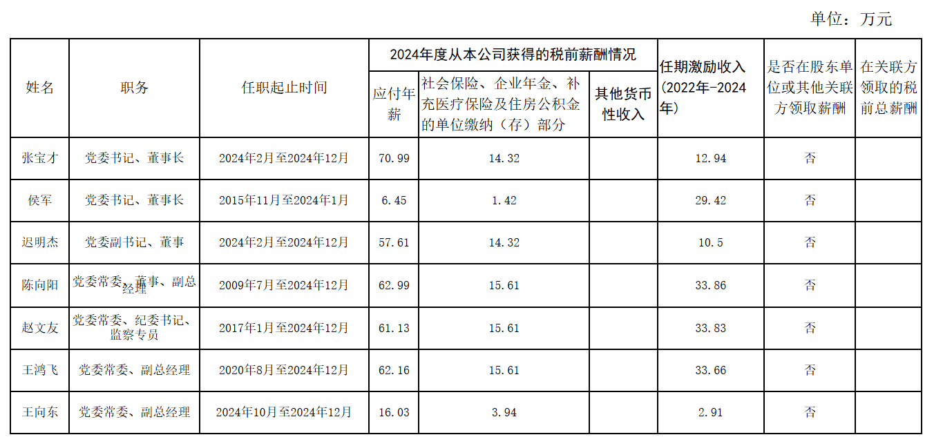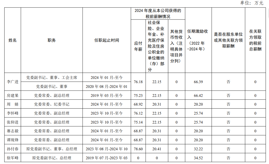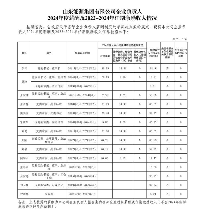山东能源集团党委书记、董事长李伟2024年应付年薪也较高,为88.19万元。