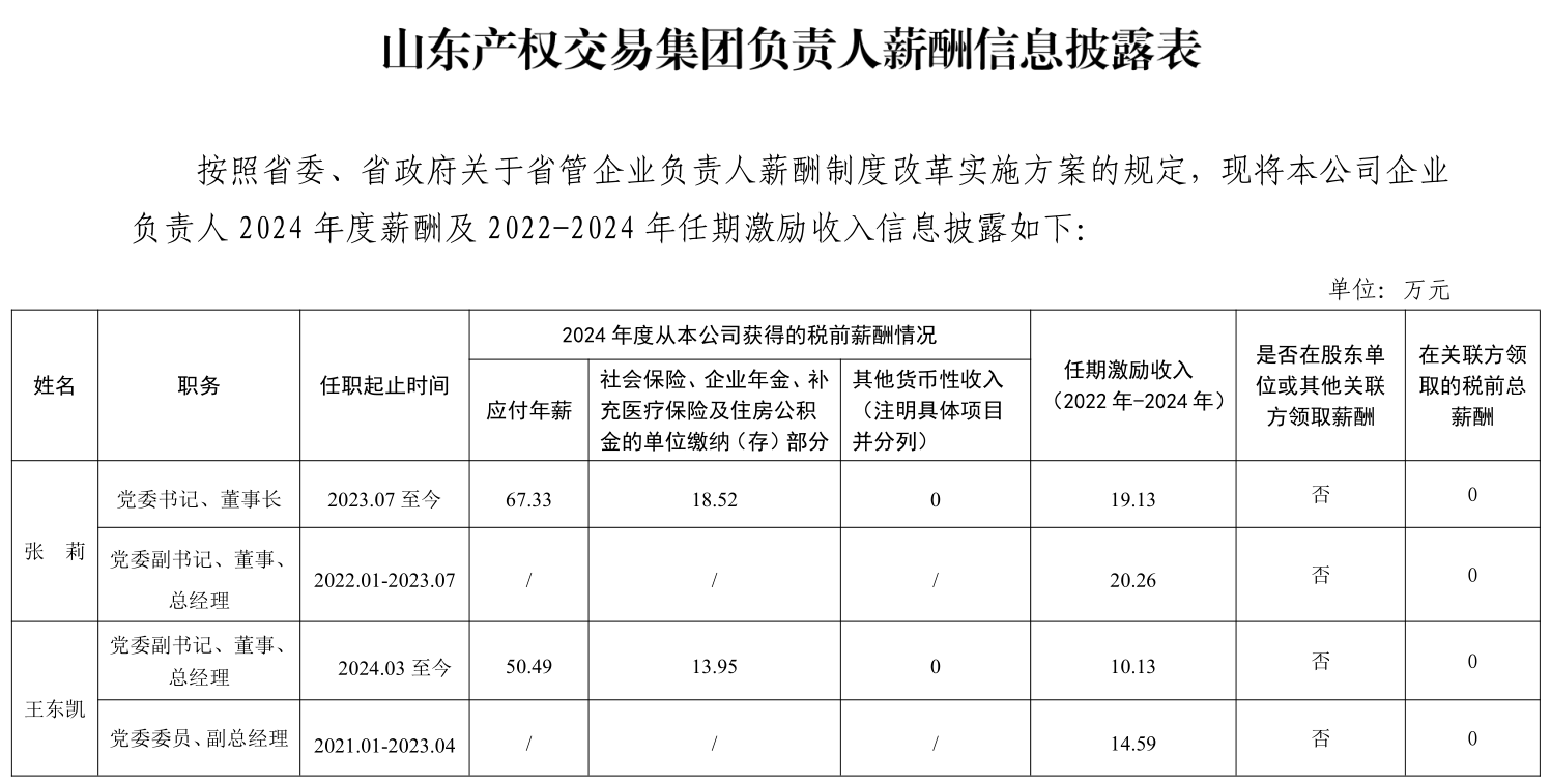 山东省土地发展集团有限公司企业负责人薪酬信息披露