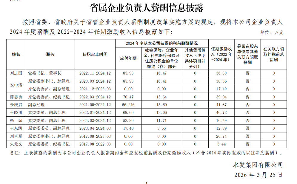 省属企业负责人2024年度薪酬信息公开披露—水发集团有限公司