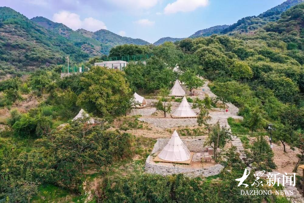 一颗山楂果,不光让村民腰包鼓了起来,还“串”出了一条长长的产业链。2023年,村里和企业一起,在60多亩地上建起了“山楂树下”露营地。城里的游客实现了躺在山楂树下数星星,耳边是山风虫鸣的美好乡村生活,开营没多久,这里就成了家庭聚会、公司团建的“网红打卡地”。“我们露营地每年给村民支付8万多元的租金,给村里的费用是近10万元。还有六七位村民在露营地打工,每年的基建工程,也大多是村民们承接的。”山楂树下露营地投资人张敬易介绍道。
