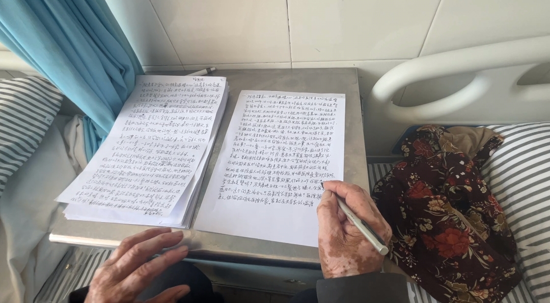 病房里的灯光,是患者最滚烫的肯定。“同病房的大姨说,大叔晚上睡一会儿,写一会儿。有一次我去病房,他拉着我的手,眼里盈着泪光。”姜新泽院长在工作群里分享着这段动人的细节。为了完成这封感谢信,老人甚至专门回家一趟,取回了自己的老花镜——这份跨越病痛的用心,比任何华丽的辞藻都更有力量。