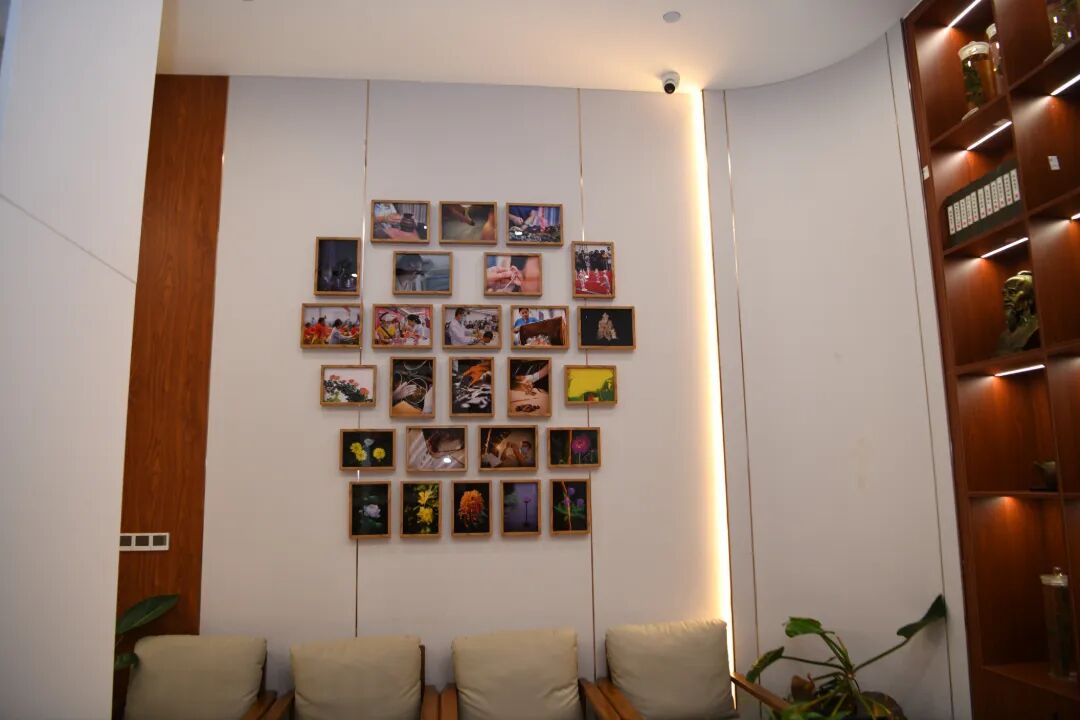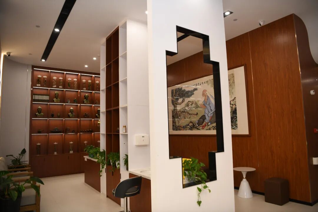 走进馆内,首先映入眼帘的是一整面中医文化展示柜。展柜内,不仅陈列着针灸铜人、古本医籍,还有各类道地中药材标本,让患者在候诊的间隙,就能直观地了解中医药的博大精深。整体装修古朴优雅,休息区温馨而整洁,室内各种装饰也是独具匠心,让人置身其中就能感受到中医的博大精深。